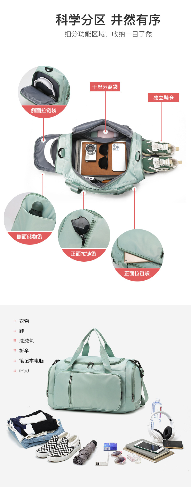 トラベルバッグ 大容量 シングルショルダー 取り外し可能 バックパック フィットネス ヨガ 収納バッグ 出張 荷物バッグ スポーツ ポータブル