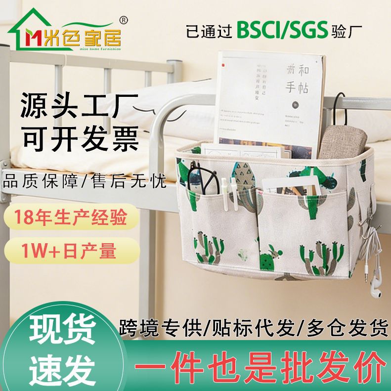床头收纳挂袋宿置物架寝室多功能挂篮上铺悬挂式浴室棉麻杂物收纳