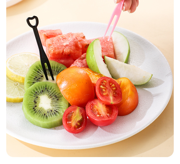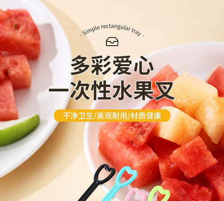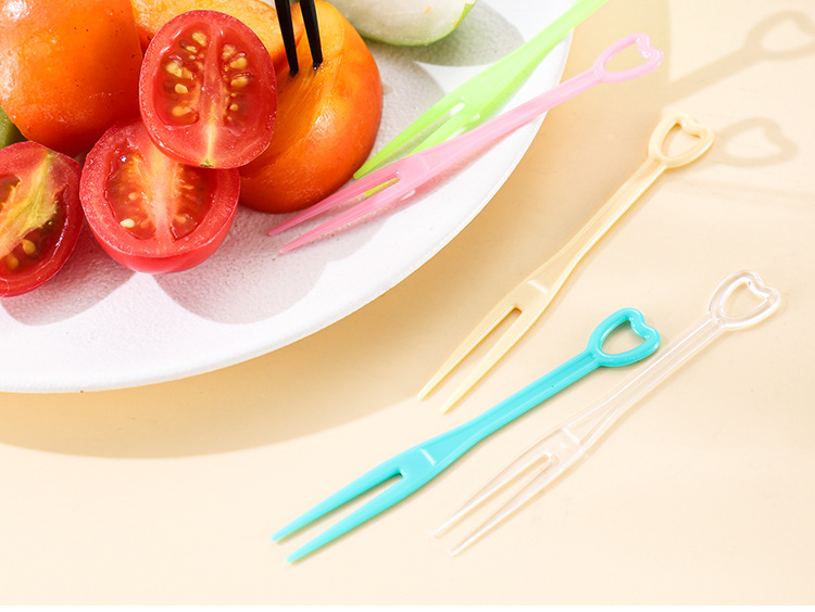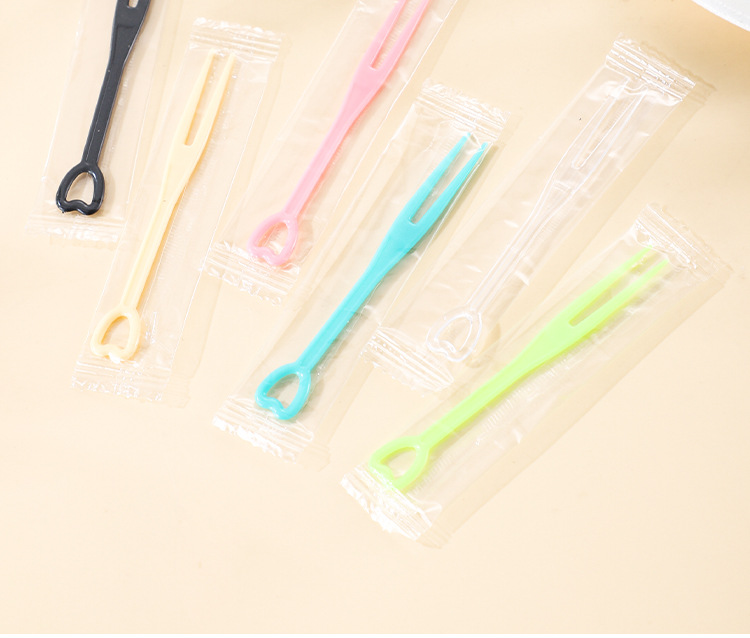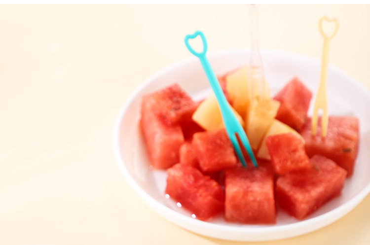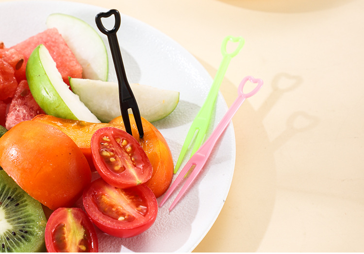 ハート型使い捨て果物フォーク果物署名商用プラスチックフォーク独立包装カラーかわいい果物フォークスイカフォーク