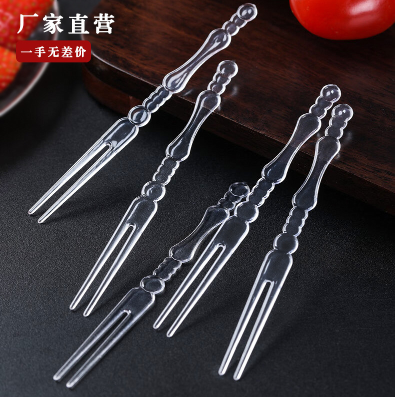使い捨て果物竹節フォーク水晶フォーク菓子月餅フォーク商用ktvバー飲食プラスチックフォークケーキ