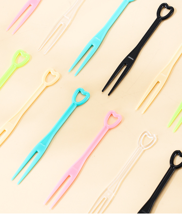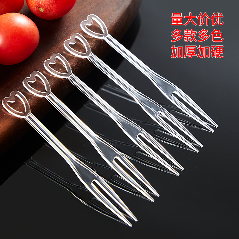 使い捨て独立したラブフォーク増粘透明フルーツピック KTV バー商業フォークホームダイニングフォークプラスチックフォーク
