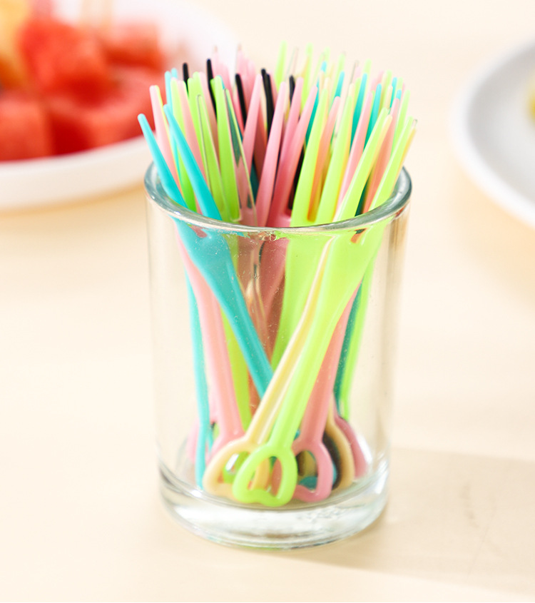 使い捨て果物フォーク愛金果物フォーク果物サインプラスチック果物挿入透明商用厚いホテルKTV