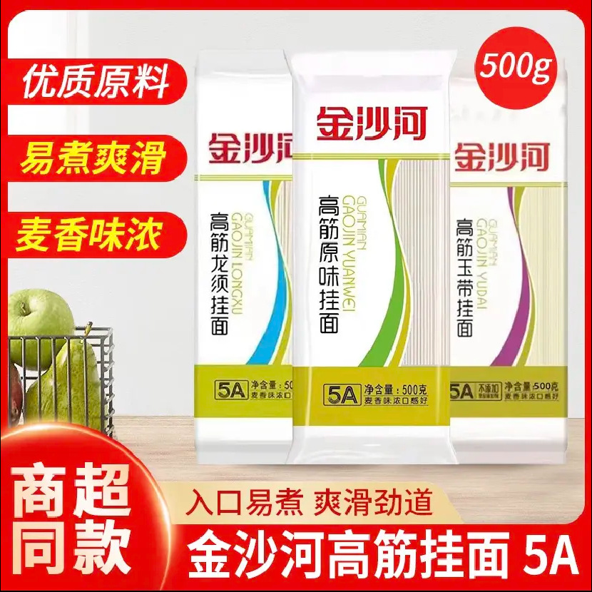 【3袋プレゼント】金沙河高筋龍ひげ麺 500g*3袋 調理済み乾麺 細麺・幅広麺・冷麺