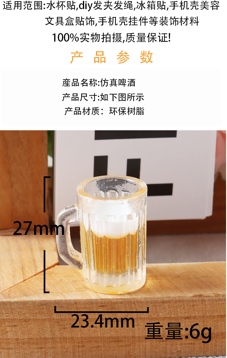 仿真带把啤酒杯 diy树脂配件批发手机壳挂件钥匙扣发饰发卡冰箱贴