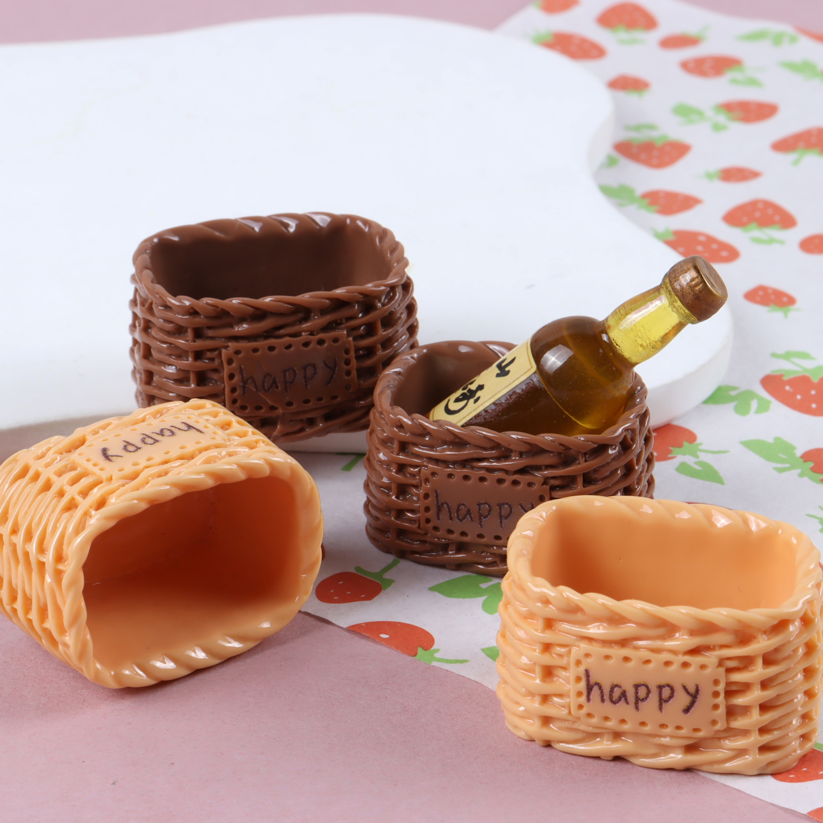 立体仿真咖色藤编框新款手工diy场景装饰篮子树脂配件桌面摆件