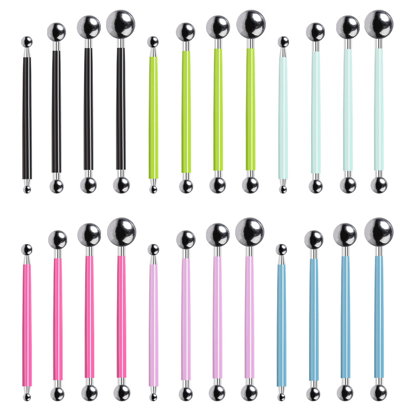 円球ステンレス鉄4本の丸棒粘土をつまんで花を追い出します。