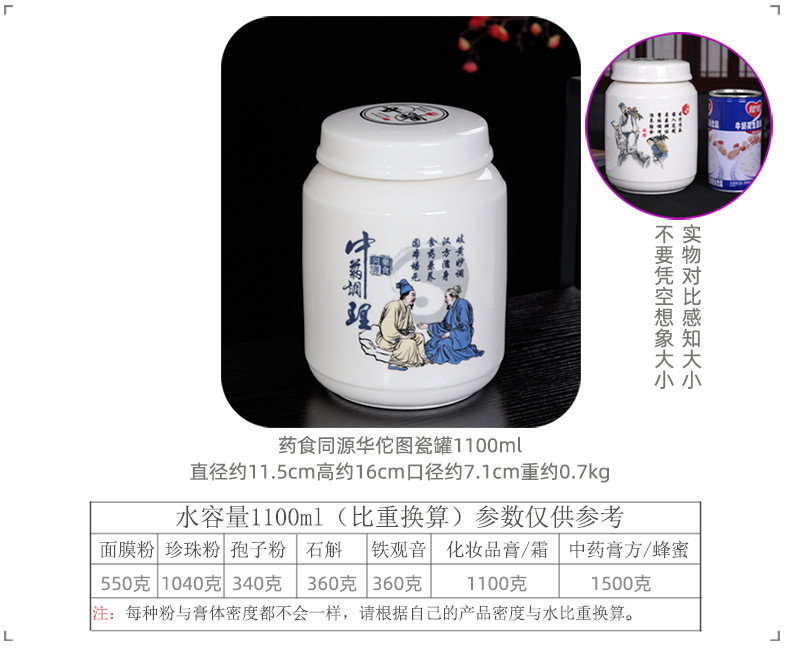 食品級耐高温蓋付き漢方薬粉蓋陶磁器瓶密封缶分注瓶クリーム滋膏方陶磁器缶