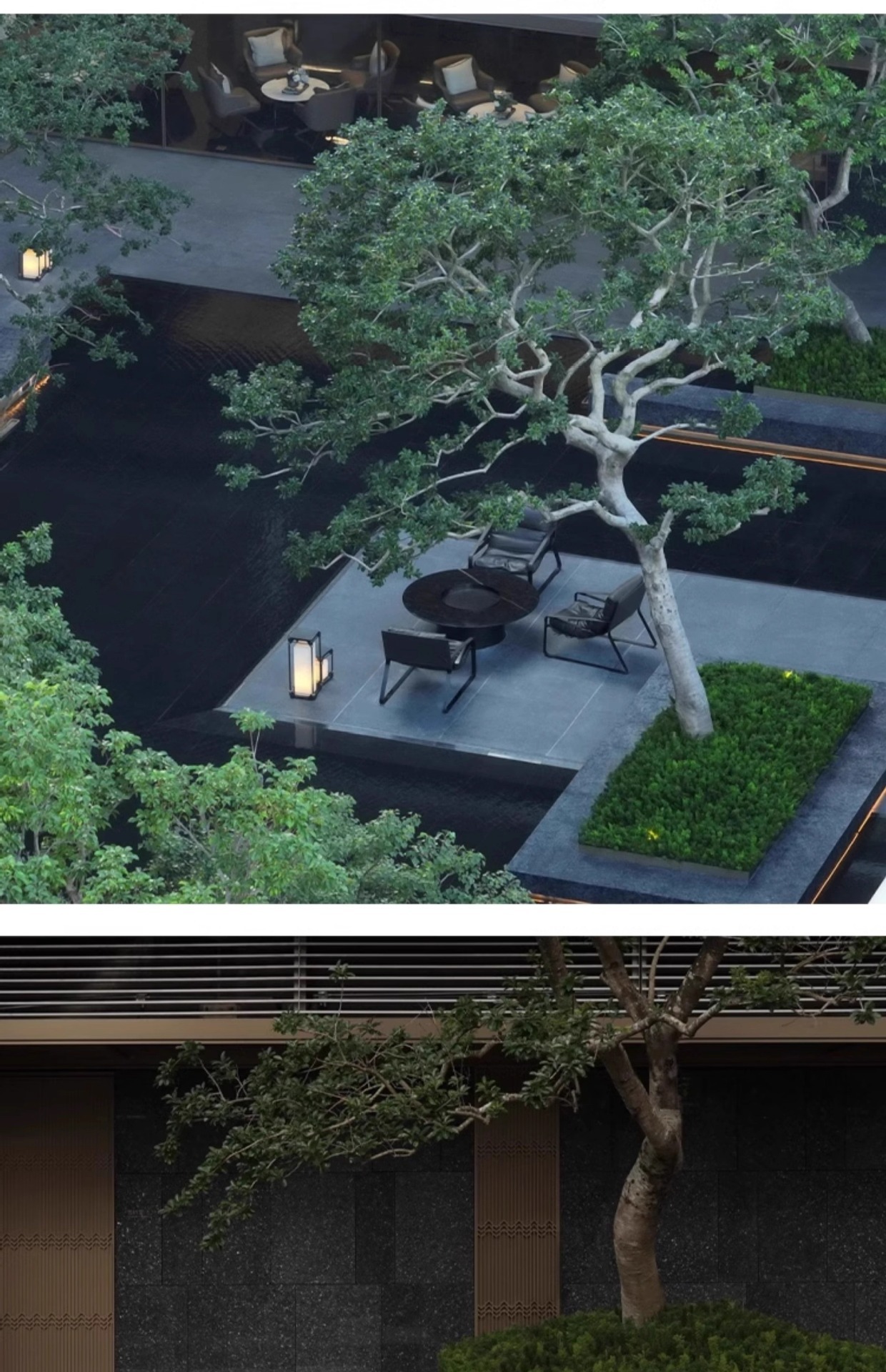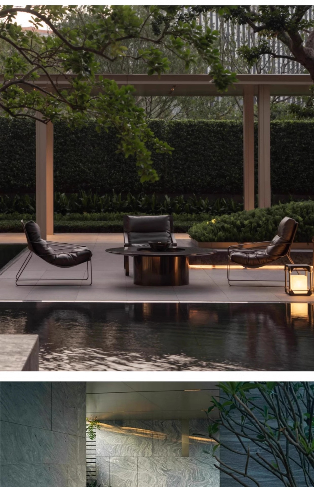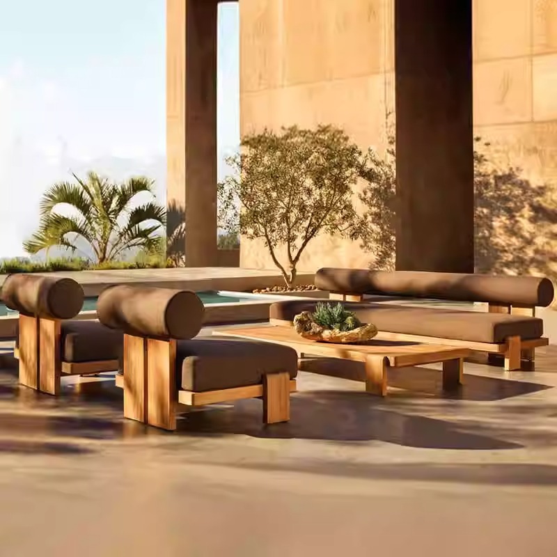 屋外ソファ 中庭チーク家具 屋外B&Bモデルルーム 屋外テラス 無垢材レジャー 防腐木材家具
