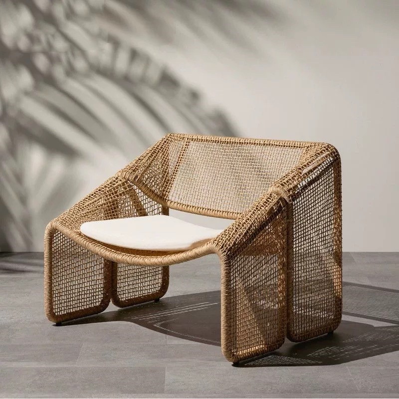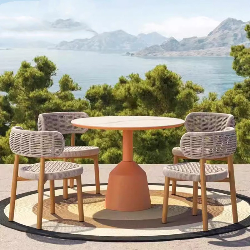 中庭屋外ソファ籐椅子北欧編組ロープテラス屋外バルコニーテーブルと椅子ヴィラB&B家具コーヒーテーブルの組み合わせ