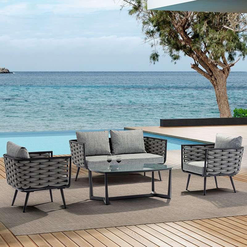 北欧屋外ソファ籐編みテラス組み合わせ庭バルコニー籐リビングルーム縄編みソファカジュアル別荘家具