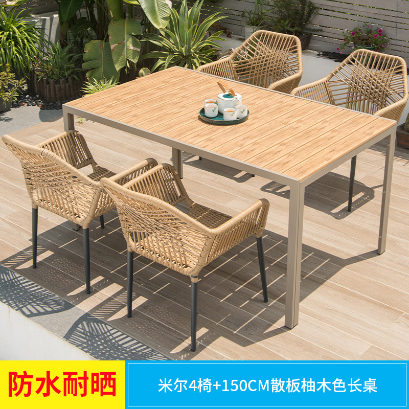 屋外レジャーテーブルと椅子の組み合わせ屋外プラスチック木製テーブル中庭屋外テラスレジャーガーデンヴィラB&B北欧