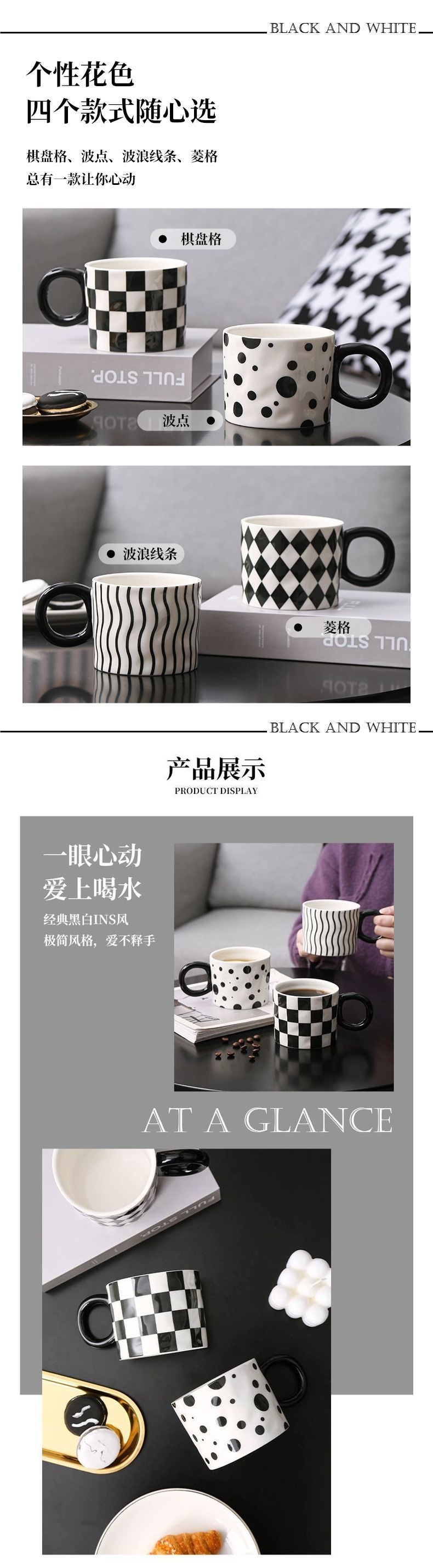 黒と白のシンプルなマグカップ蓋付き大容量セラミックカップパーソナライズされたカップルウォーターカップホームブレックファストカップコーヒーカップ女性用