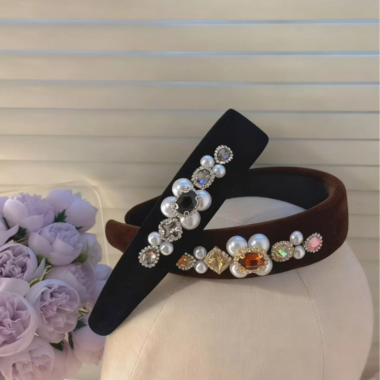 高定小众设计气质深咖丝绒水钻秋冬发箍秋冬丝绒高级小姐姐头饰