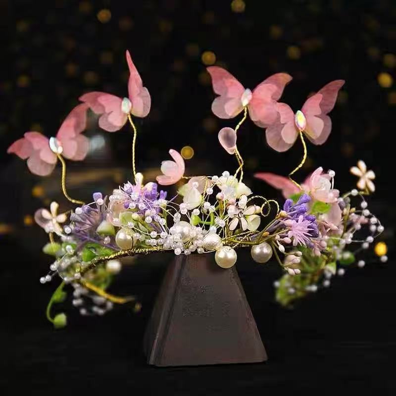 子供用花輪ヘッドバンド、女の子用パールフラワーヘアバンド、小さな女の子用ヘッドバンド、蝶の要素を含むヘアアクセサリー、爽やかで甘いスタイル