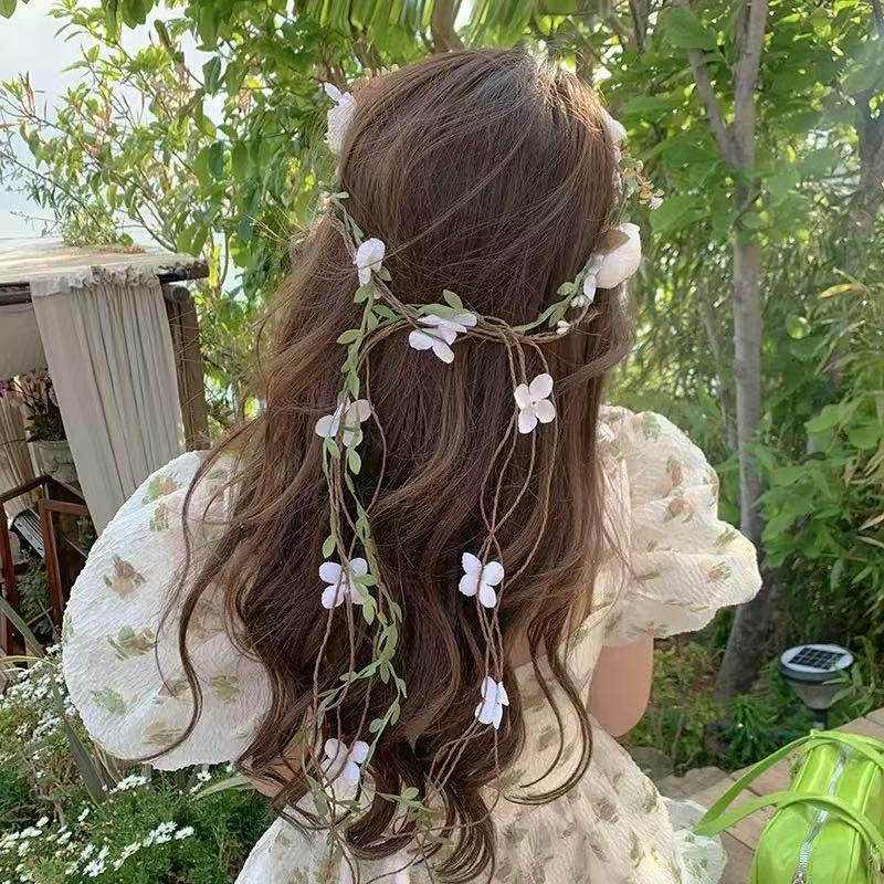 2025 新しいガーランドヘッドバンド森ガール花の枝と葉タッセルガーランドヘッドバンドファッション森スタイルヘッドバンド新鮮なヘアアクセサリー