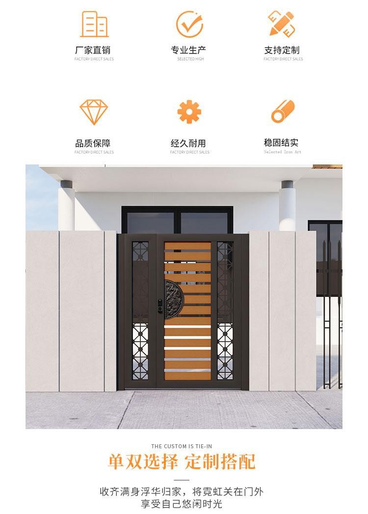 錬鉄製ヴィラ中庭木製アルミニウムドア田舎の庭エントランスアルミニウム合金ドアステンレス鋼ガーデンコミュニティゲート