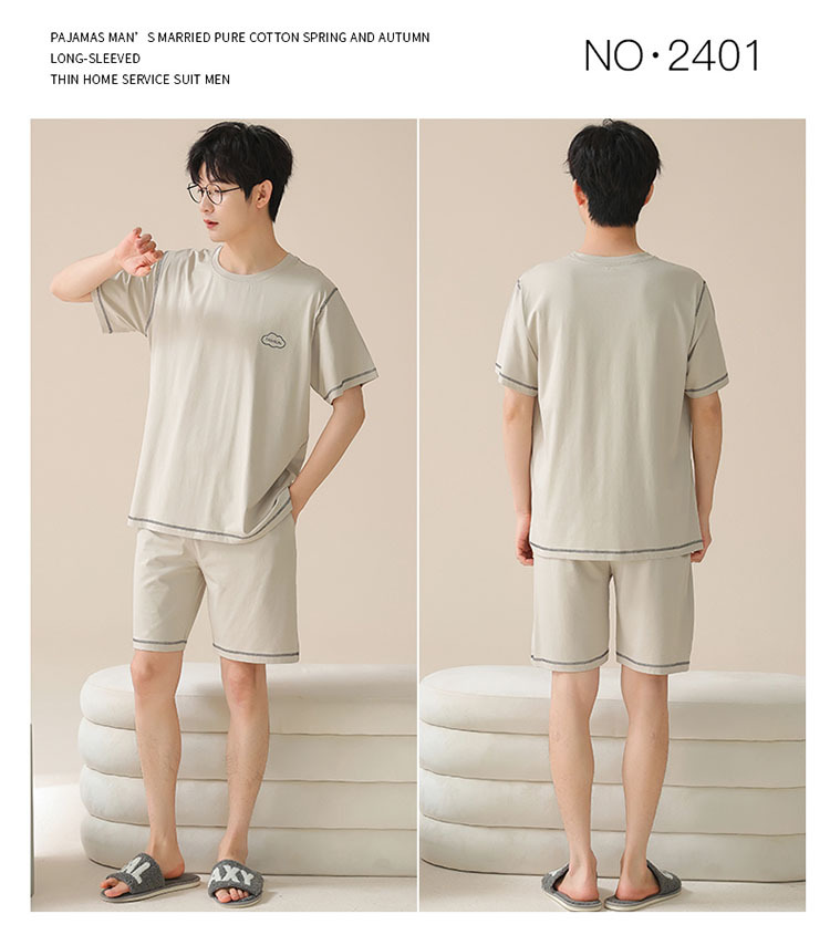 メンズパジャマ夏の純綿メンズ夏半袖スーツ薄いホームウェアカーディガン2025新しいスタイルは屋外で着用できます