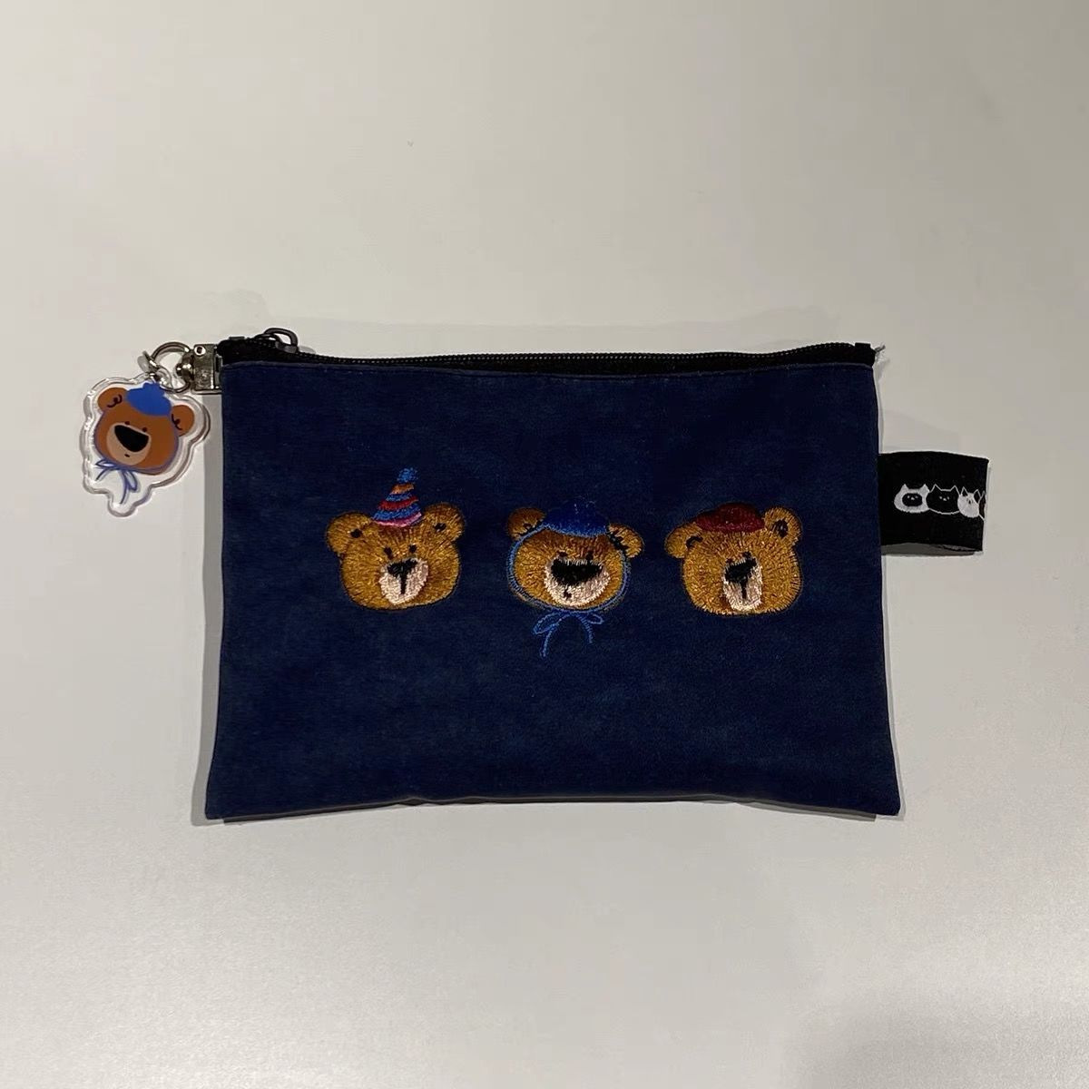 オックスフォード布小銭入れかわいいクマ刺繍口紅バッグシンプルでポータブル大容量ヘッドフォンデータケーブル収納袋