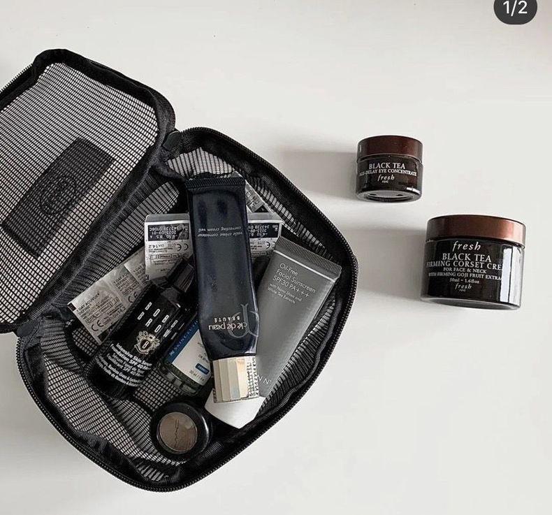 韓国の超人気ブランドメッシュ大容量旅行ポータブル小型ポータブル化粧品バッグメッシュトイレタリーバッグ収納袋