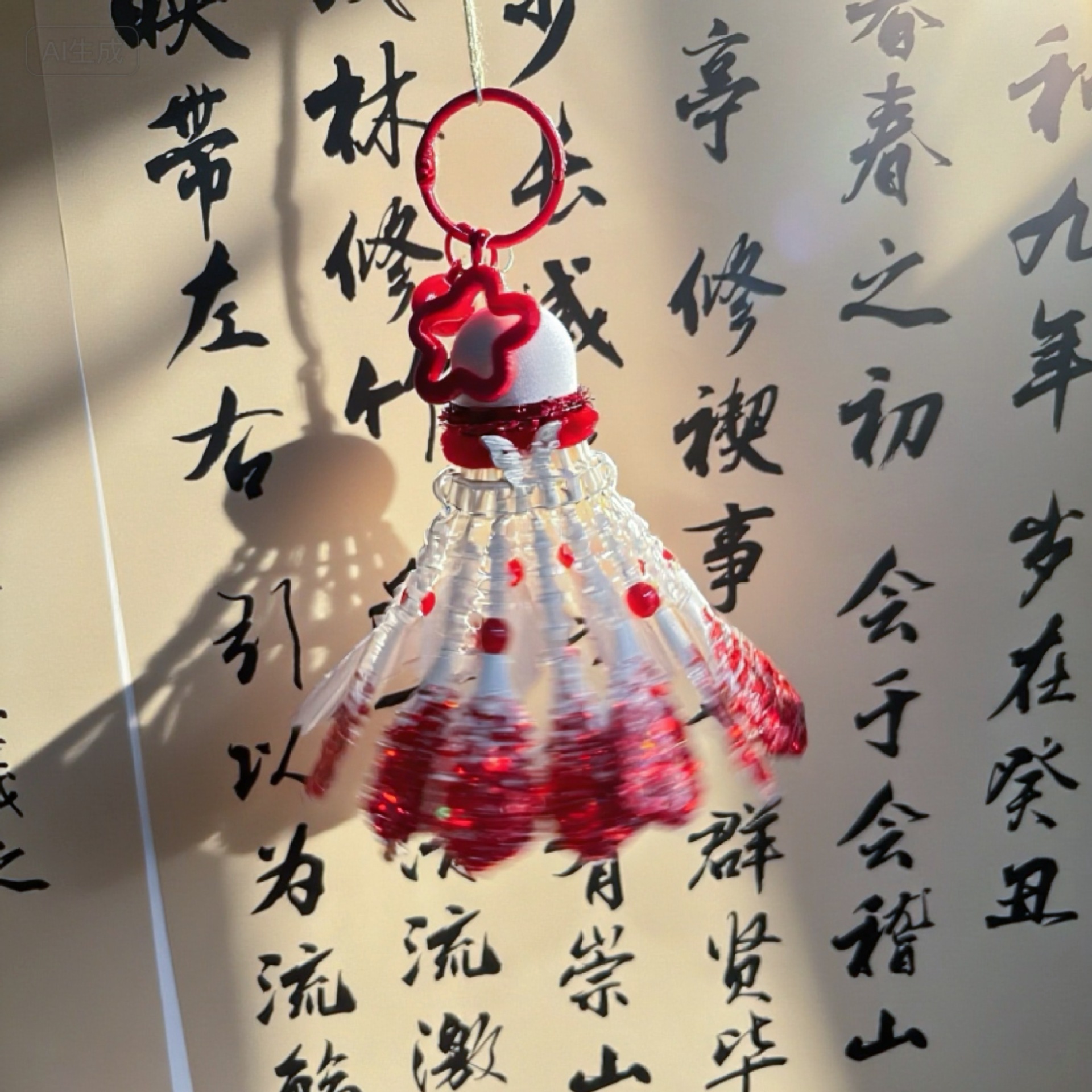diy手工国风大红蝴蝶羽毛球挂件材料钥匙扣女朋友七夕情人节礼物
