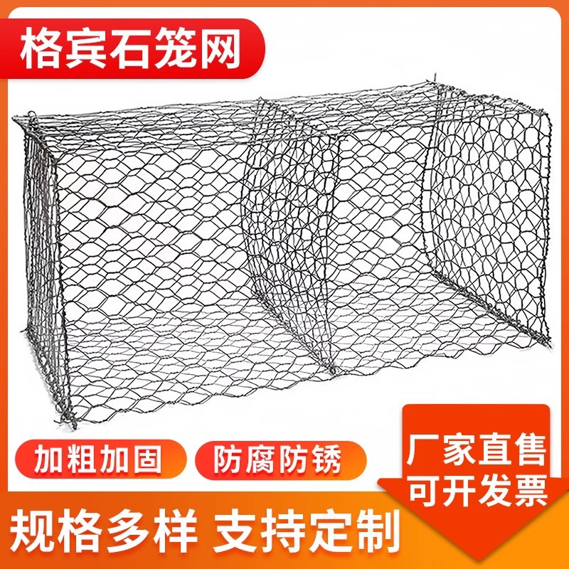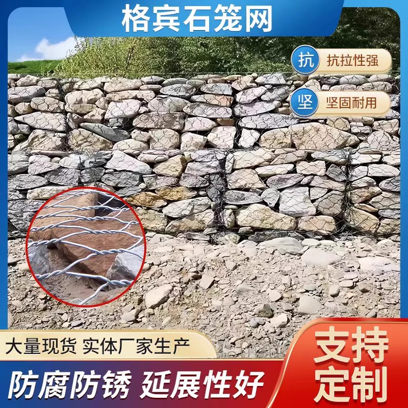石笼网河道治理护坡固滨笼水利防洪固堤铅丝笼防汛护坡工程格宾网