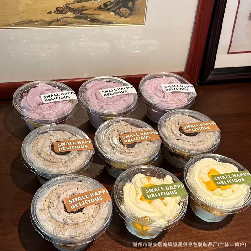 正方形のムースカップ、豆乳芋泥チーズケーキ包装箱、ティラミスプラスチック木屑カップ、デザートボックス