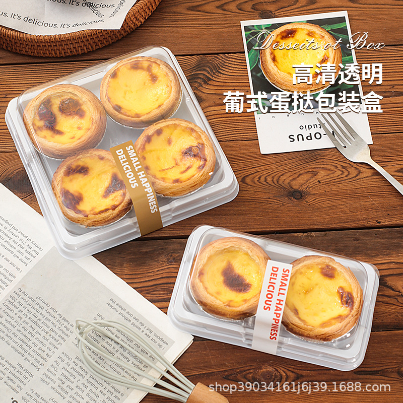 一次性透明塑料蛋挞盒手工烘焙葡式蛋挞打包盒2/4粒蛋挞包装盒子