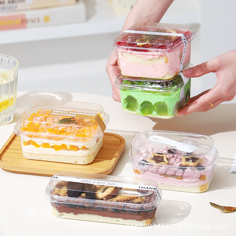 ケーキボックス包装箱、小さなティラミスムースデザート包装、クリーム入り正方形透明容器、越境専用