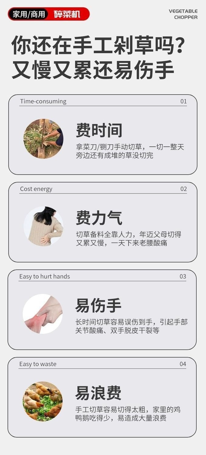 多機能野菜細断機、草細断機、ステンレス製家庭用電動野菜、鶏、鴨の野菜細断機、草刈り機