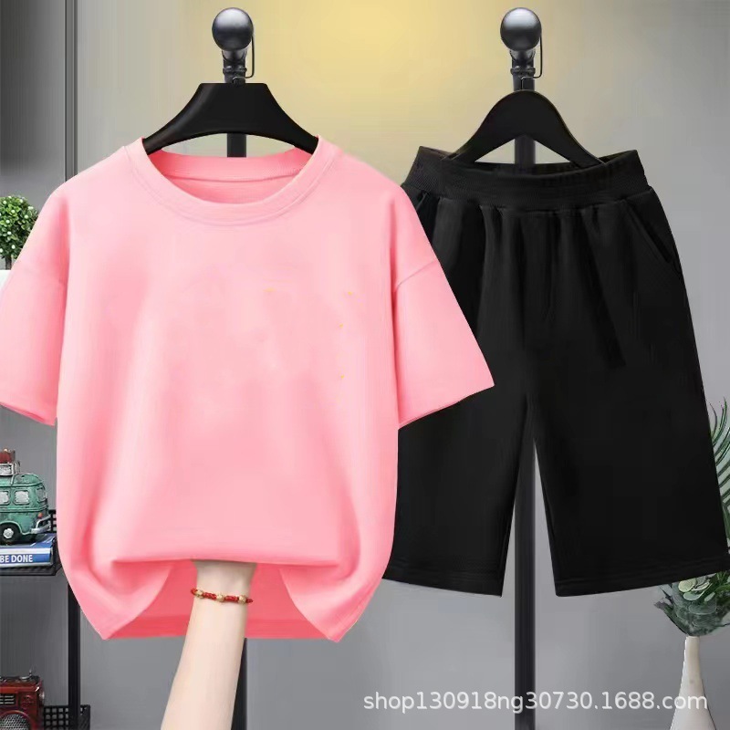 子供半袖スーツ純綿 Tシャツ夏の男の子と女の子の子供服ショーツ 2 点セットメーカーのドロップシッピング卸売
