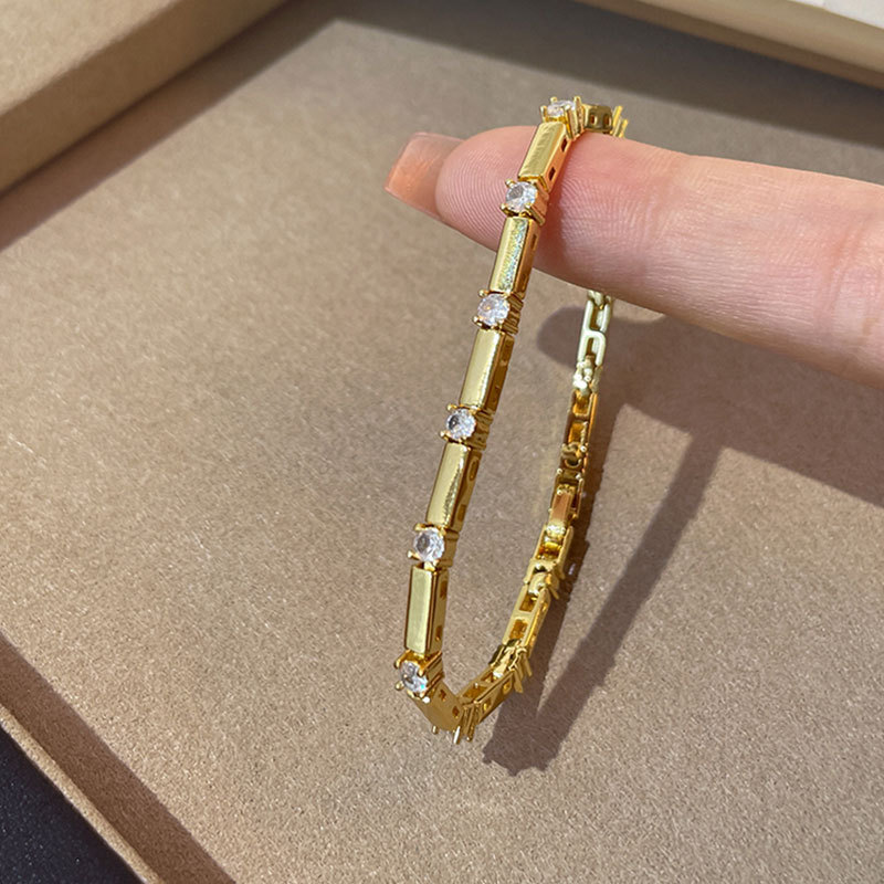 高级感金色方块微镶锆石手链女气质小众时尚潮流通勤百搭手环手饰