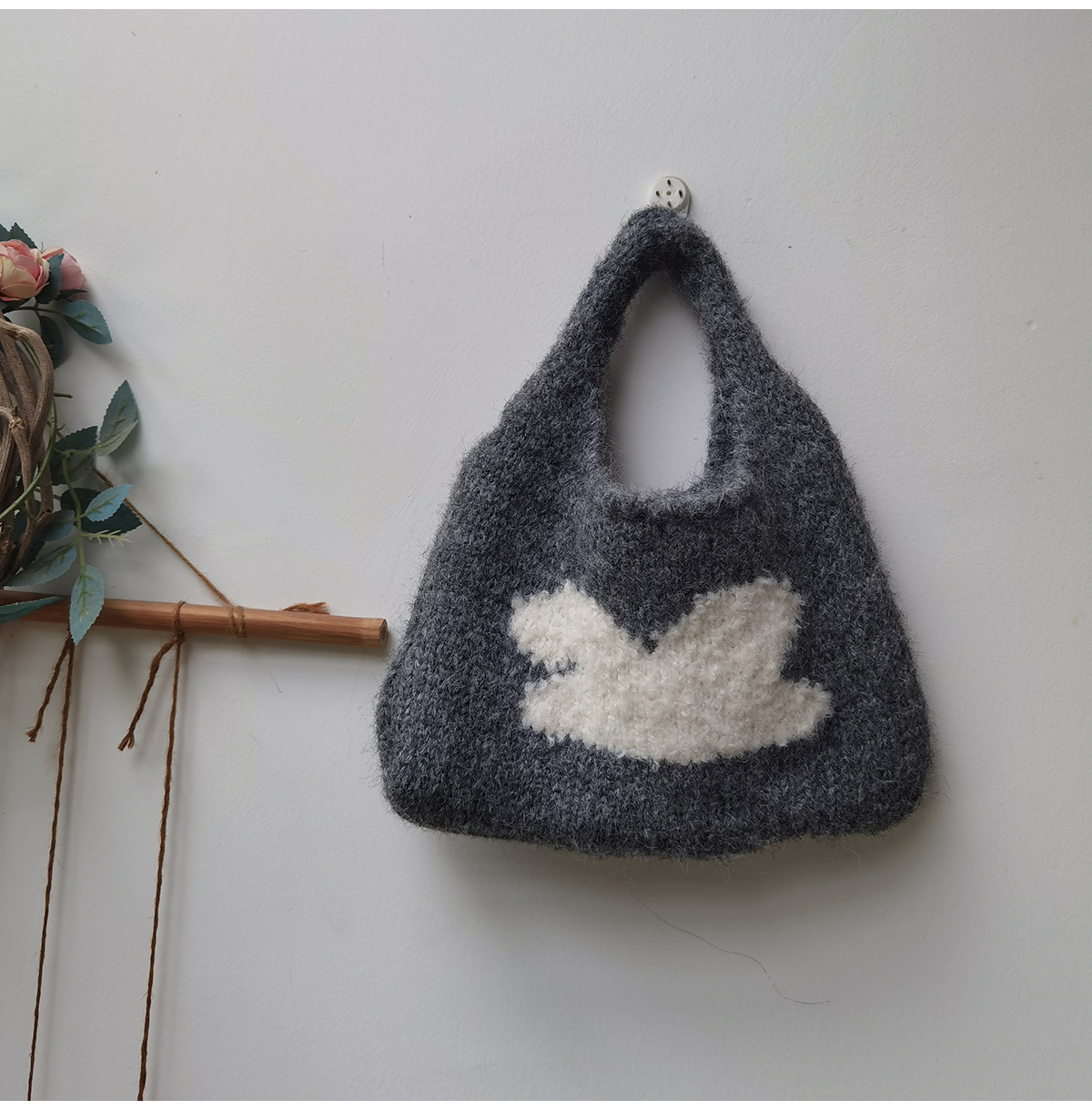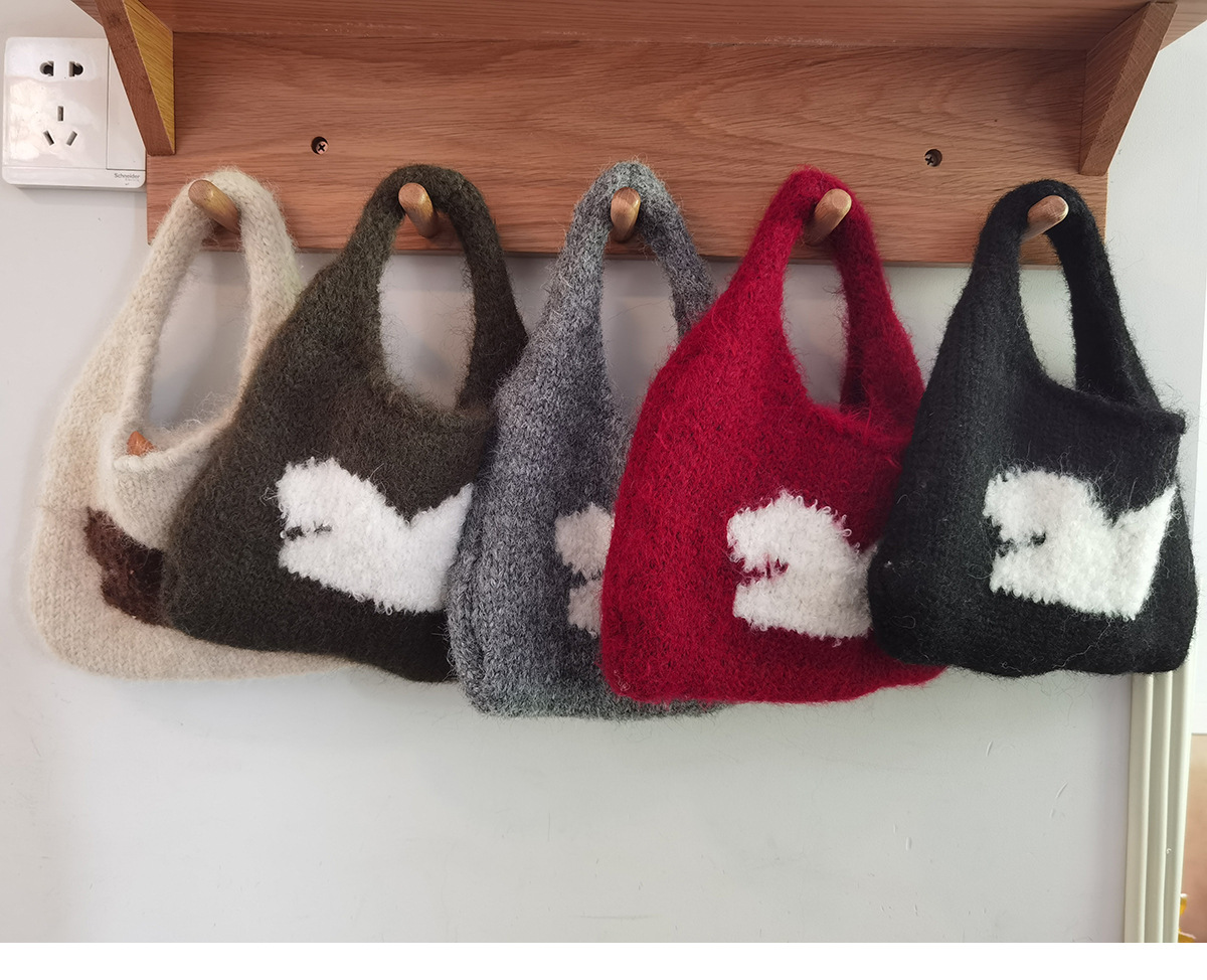 新しいぬいぐるみニットバッグハンドバッグかわいい漫画パターンニッチデザインセンスミックスカラー織バッグ携帯電話バッグ
