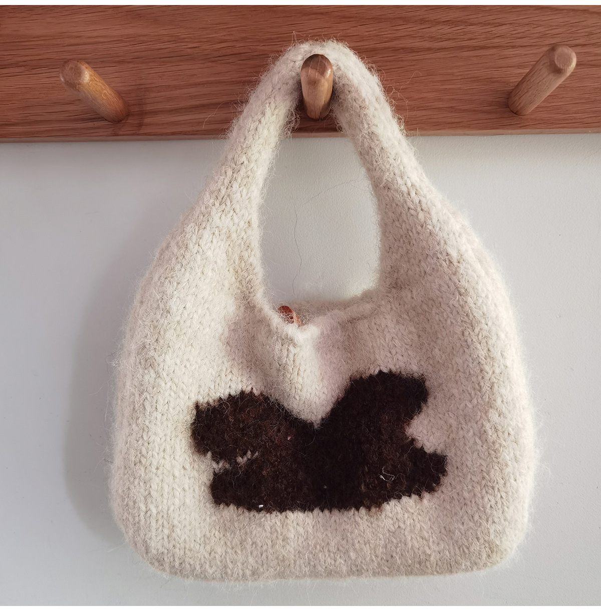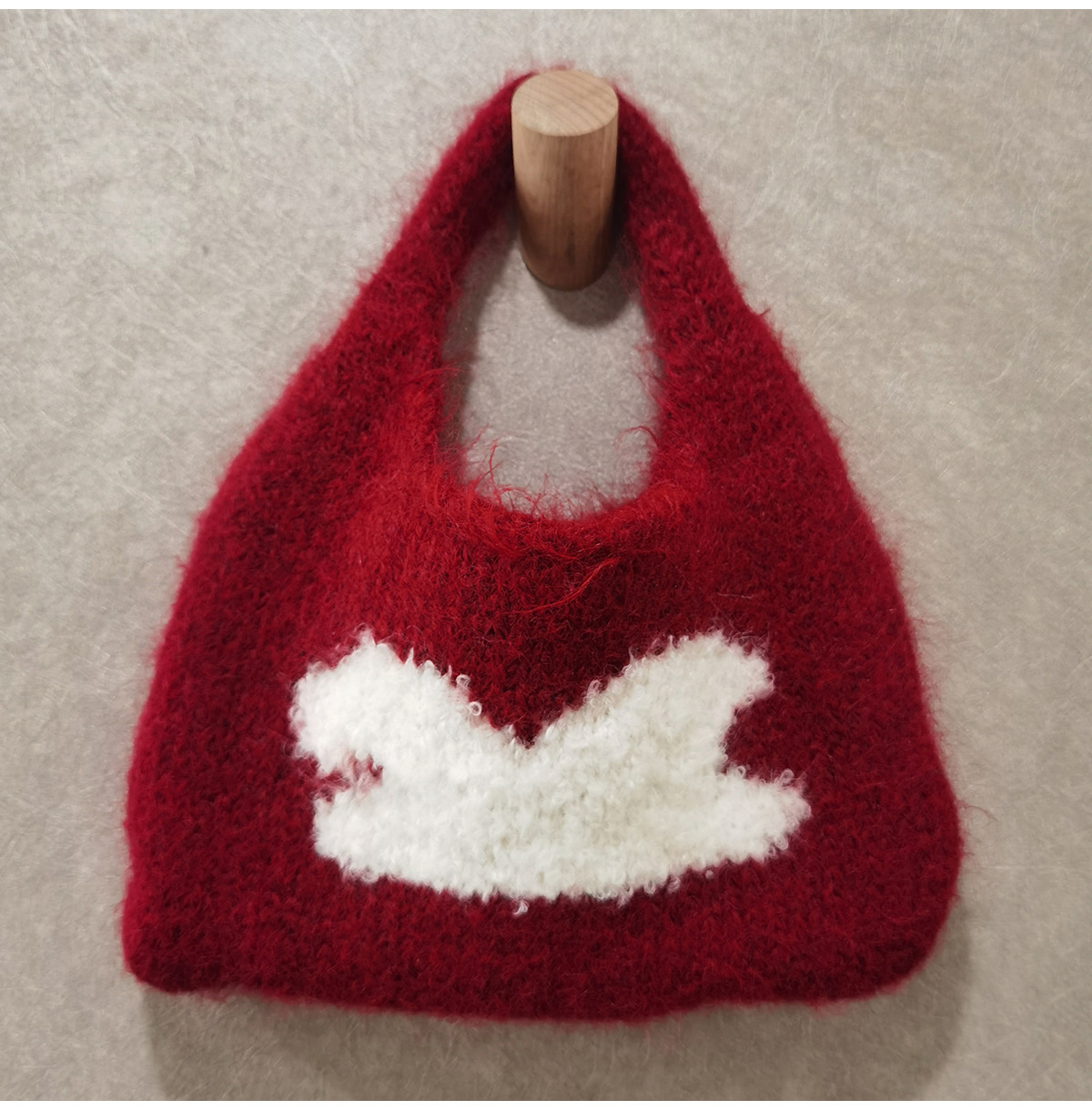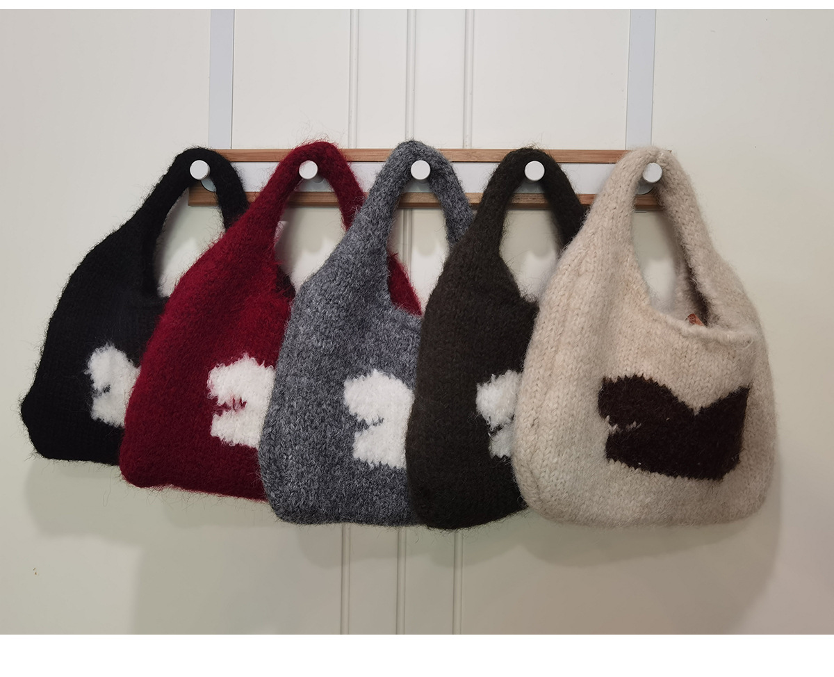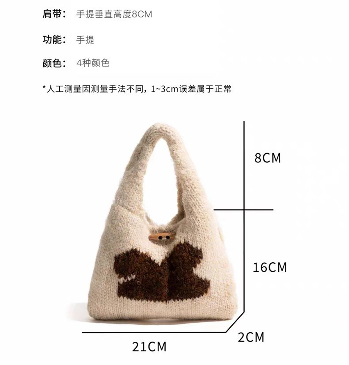 新款毛绒针织包手提包可爱卡通图案小众设计感混色编织包手机包