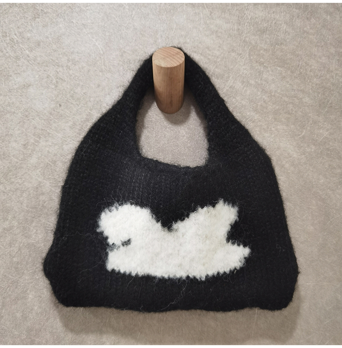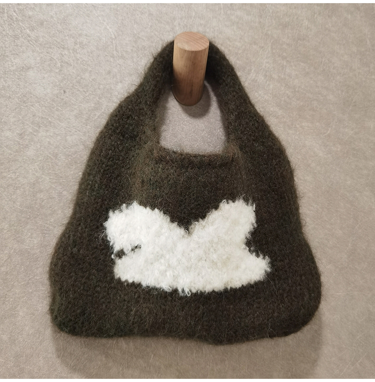 国境を越えたニットバッグの牛角ボタンのハンドバッグには、祝日の雰囲気感のあるウサギのジャカードバッグが入っています