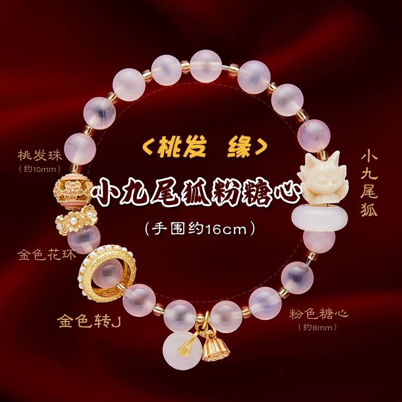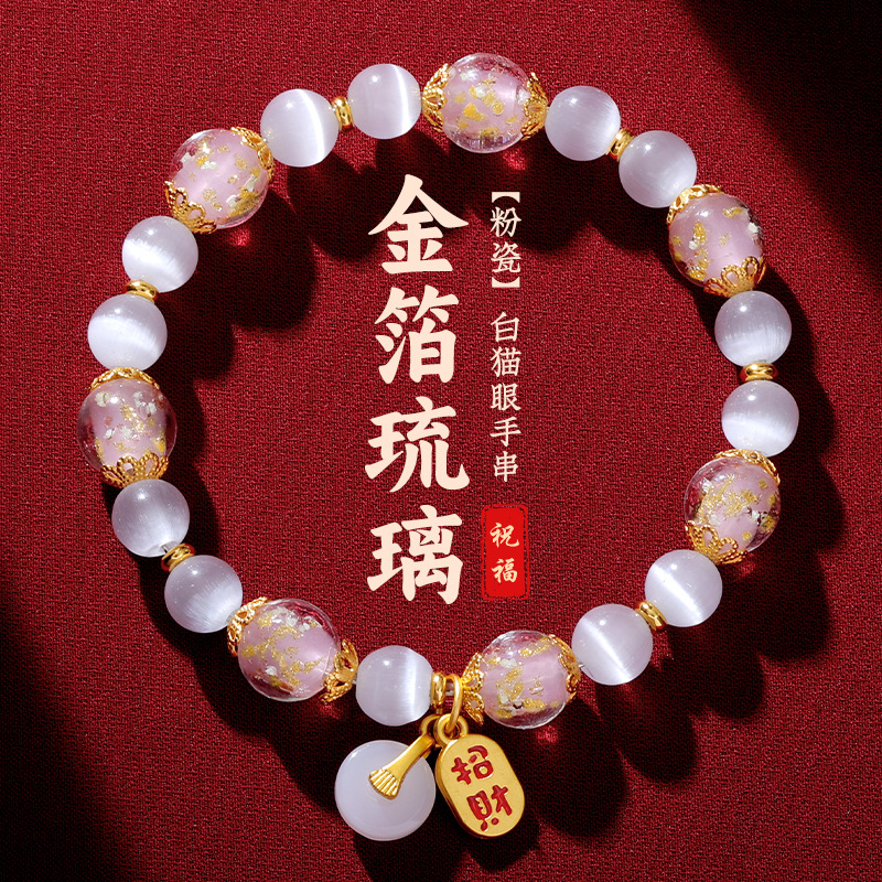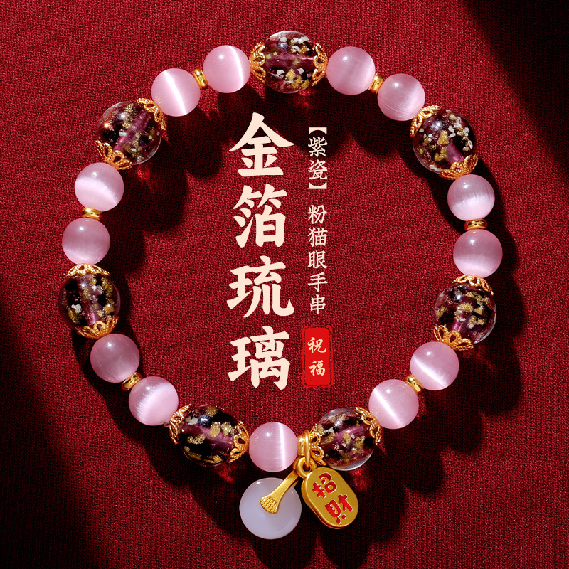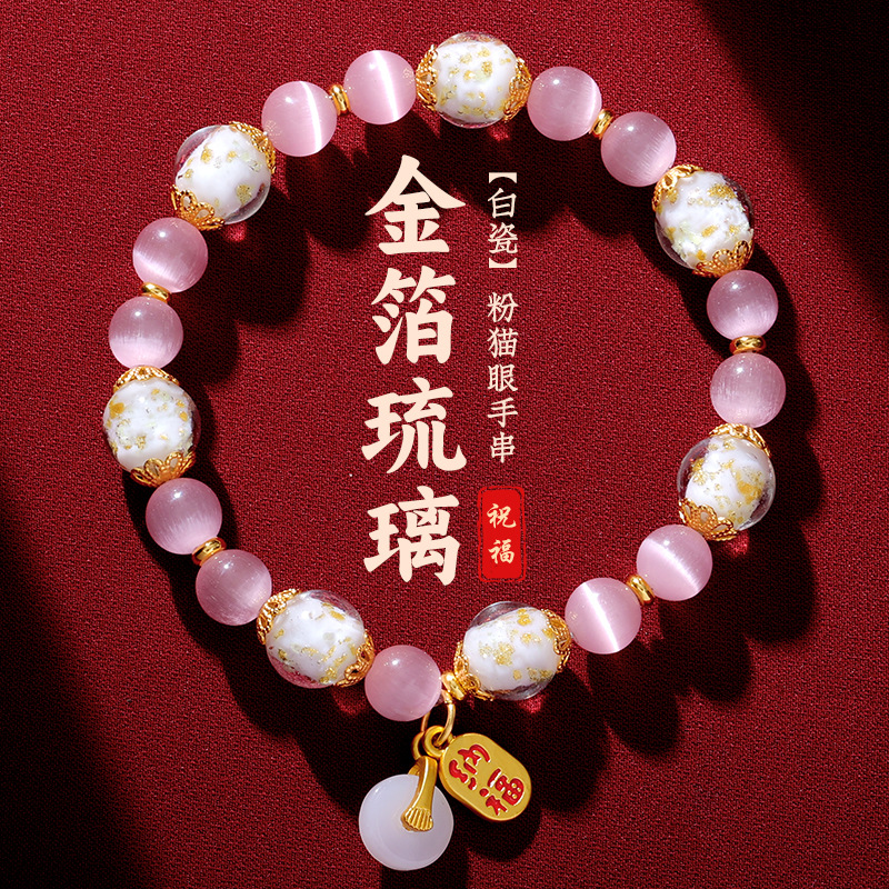 香灰磁器鳳九狐手串粉磁器金箔瑠璃ブレスレット国潮宮廷風輸送粉晶寺院同金