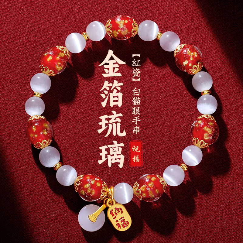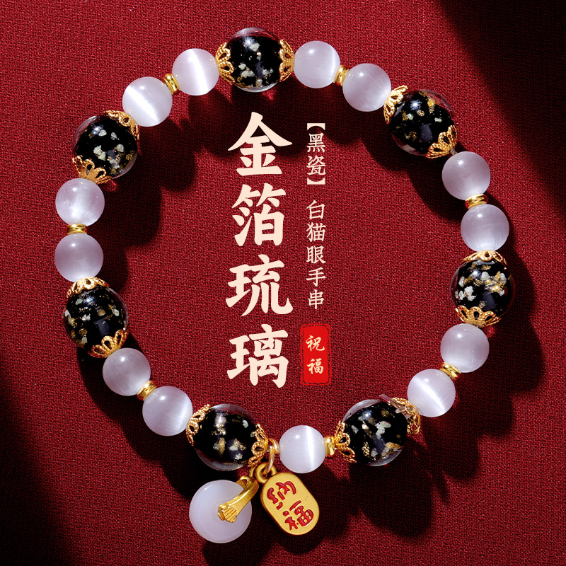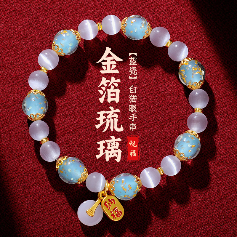 景勝地と同じスタイルの灰色のガラスキャッツアイストーンブレスレット、手焼き金箔ガラスブレスレット、寺院の安全バックル卸売