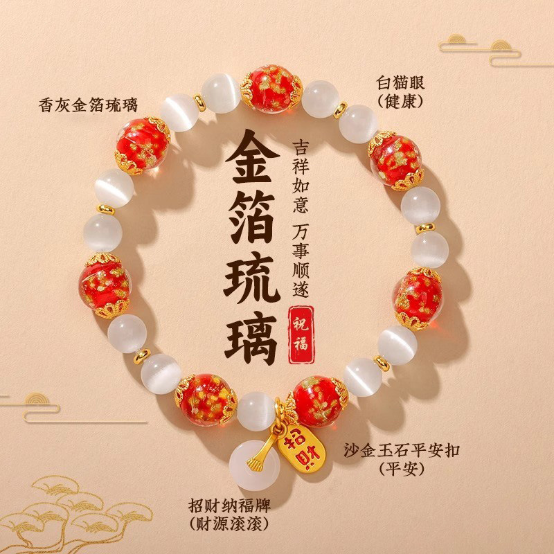 香灰瑠璃手串ブレスレット金箔珠三通アクセサリーアクセサリー七色瑠璃珠手串卸売り可能