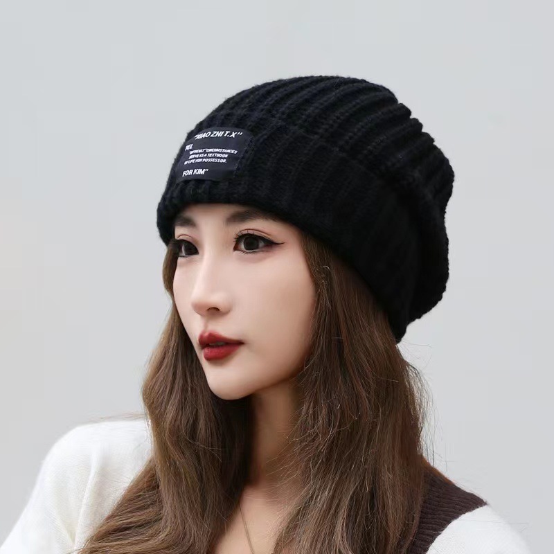 跨境帽子女韩版秋冬针织帽学生毛线帽显脸小保暖堆堆网红护耳帽