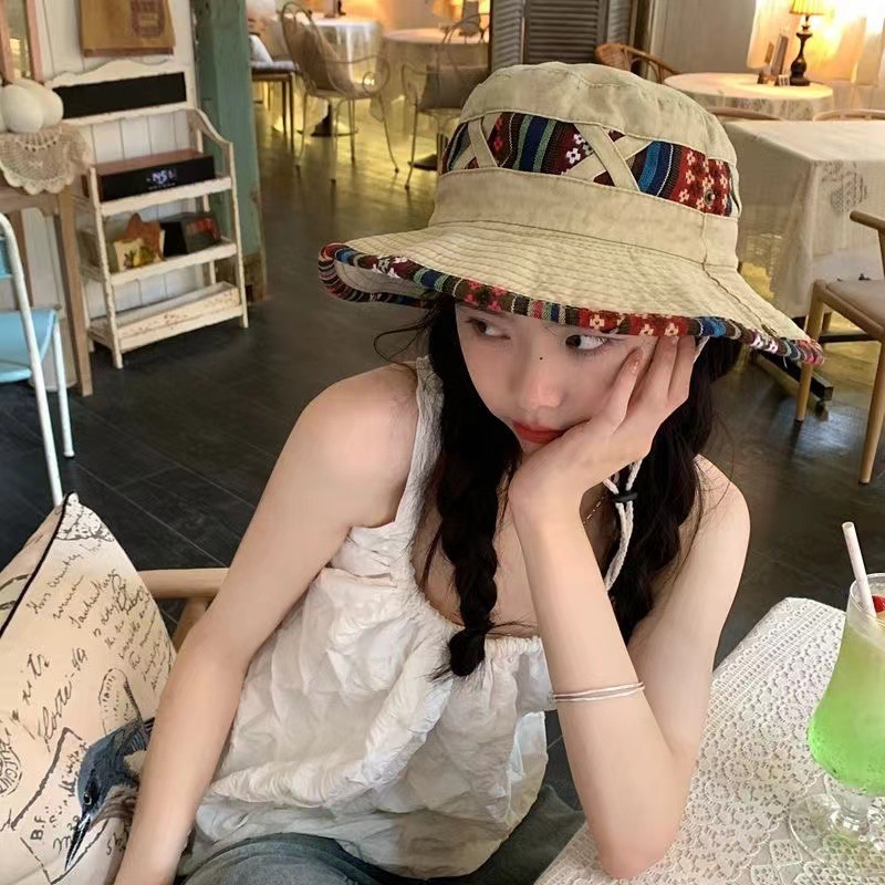 センスのある帽子、パーソナライズされたエスニックスタイルのフィッシャーマンハット、春夏のアウトドアファッションサンハット、レトロスタイル、ウォッシュ加工、ダメージ加工、ストリートスタイル