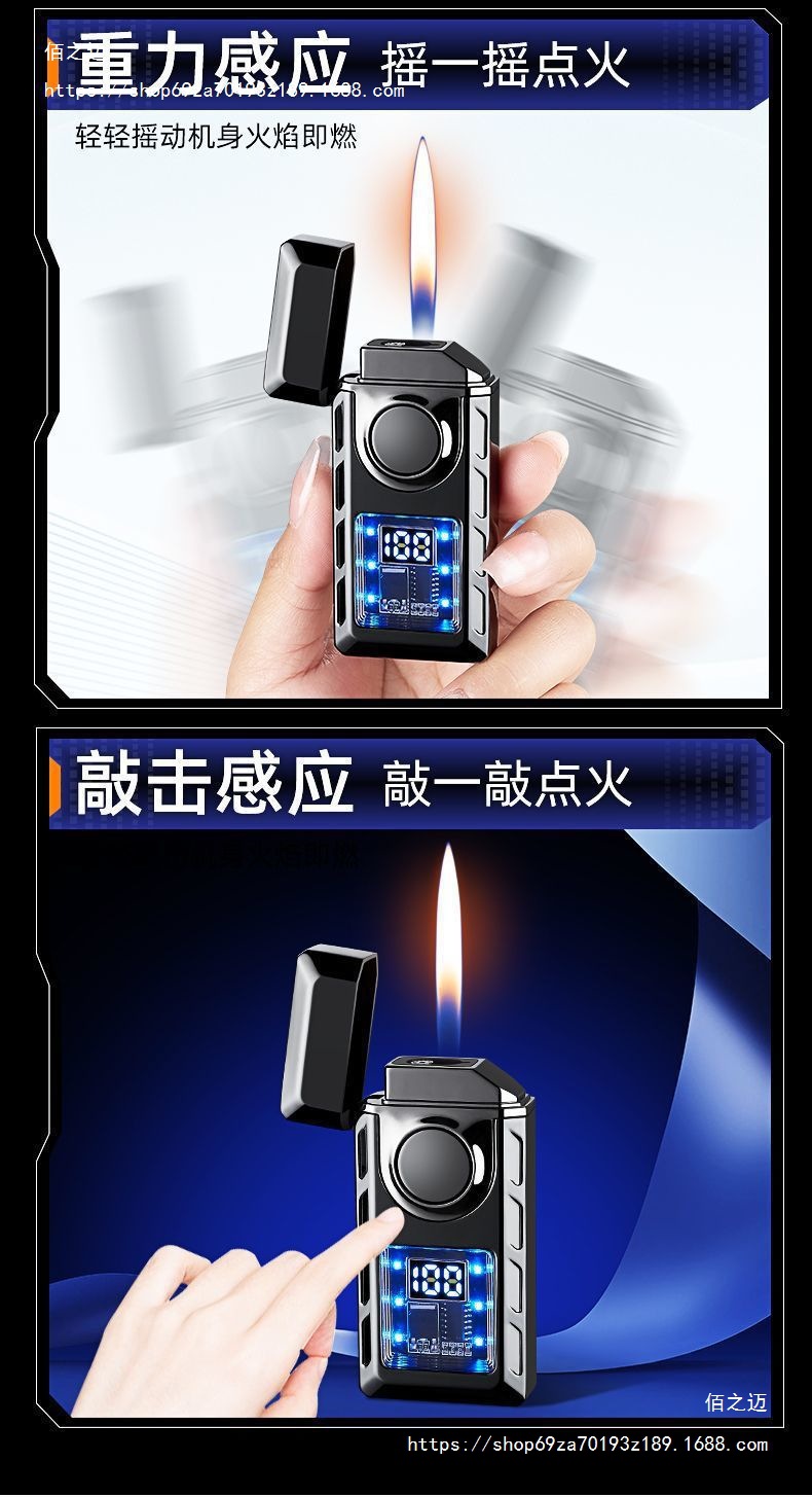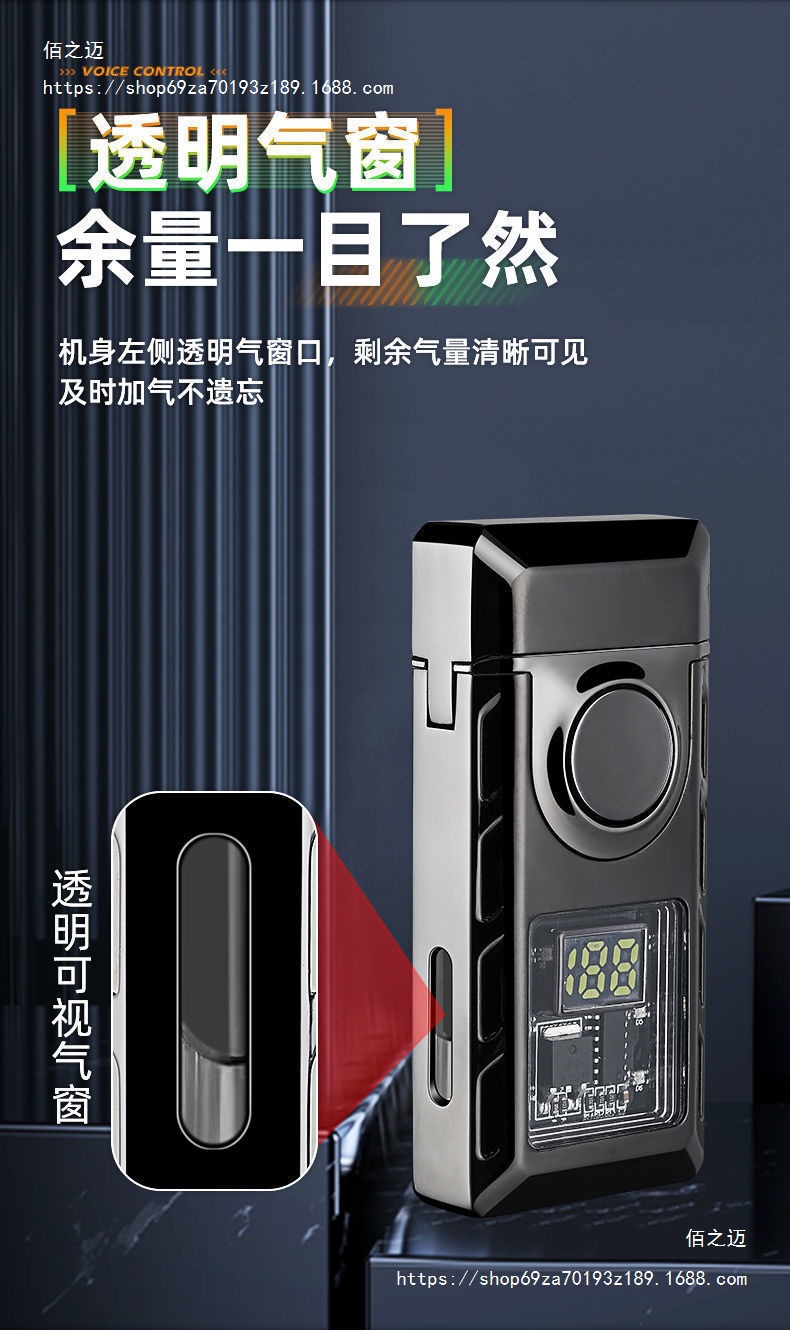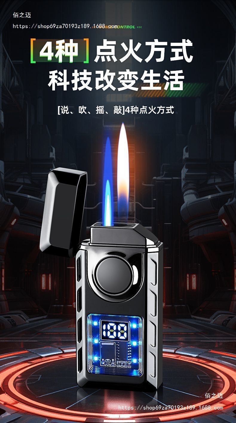 智能声控双火焰炫彩LED彩灯显示点火次数多种点火方式充气打火机