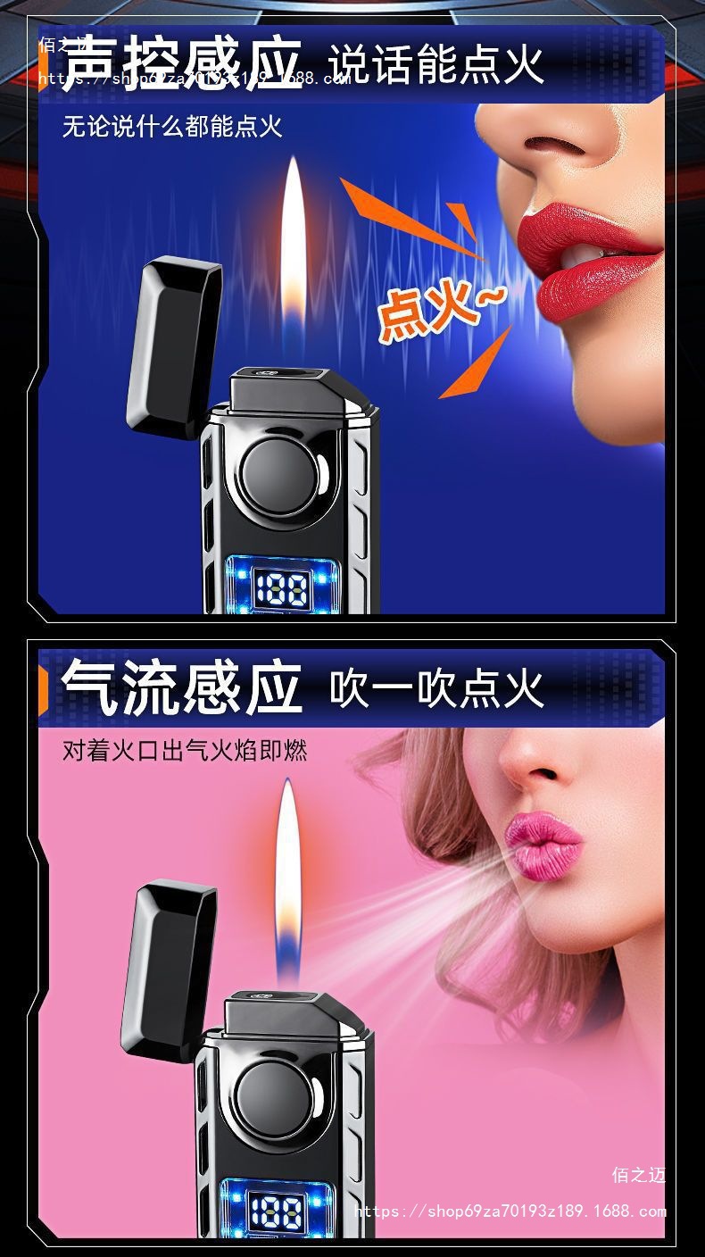 网红声控智能双火打火机两用充电气电防风充气个性创意送男友
