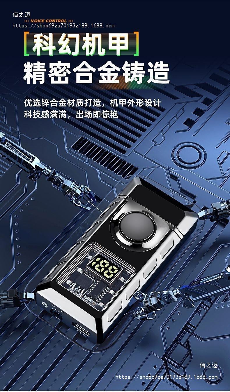メカ音声起動スマートデュアルファイヤーライター充電式ガス電気ハイブリッド4つのライター、彼氏へのパーソナライズされたクリエイティブギフト