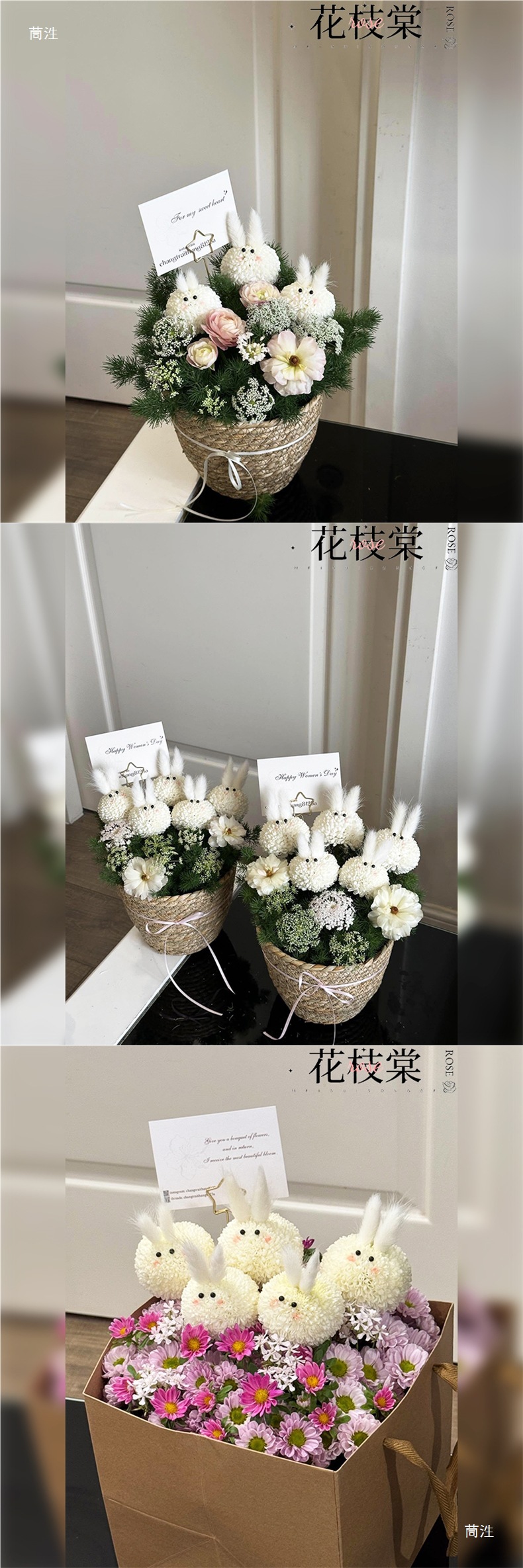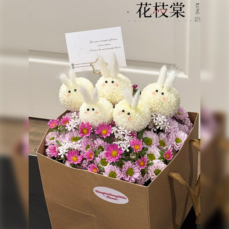 かわいい花束ウサギの花束素材アクセサリーウサギ人形花束卓球菊アイアクセサリーハンドボックス