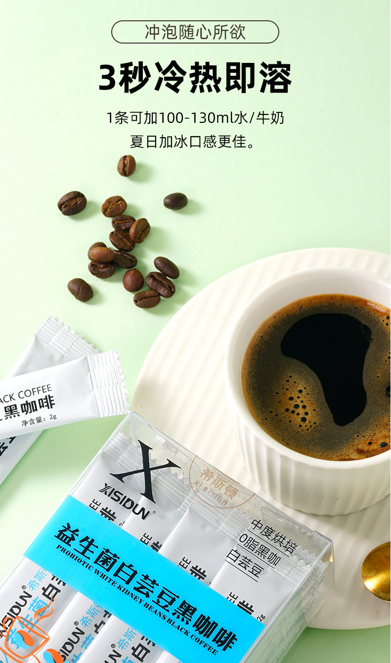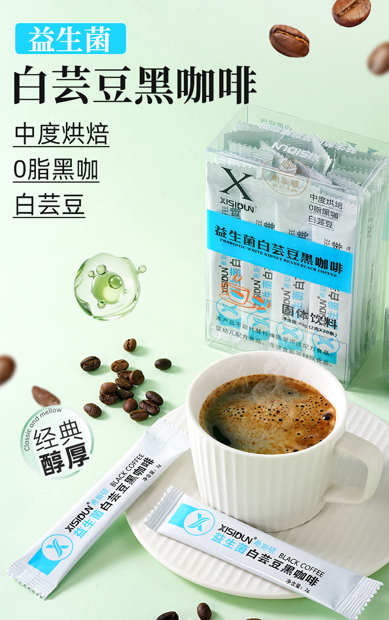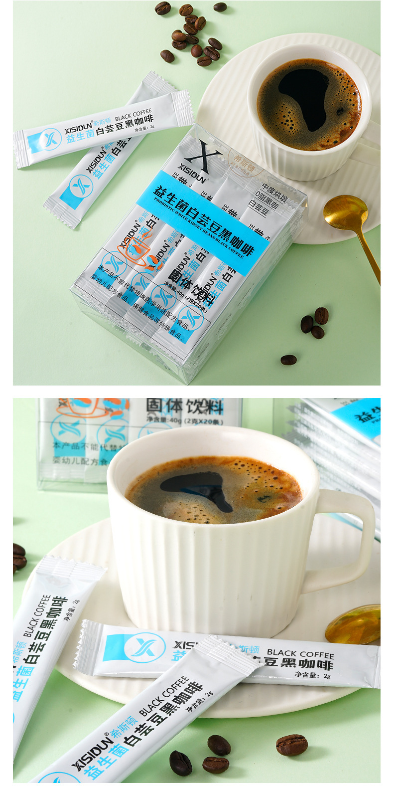 新しいアップグレードプロバイオティクス白芸豆黒コーヒー香アルコールアメリカラテインスタント冷熱ダブルコーヒー粉