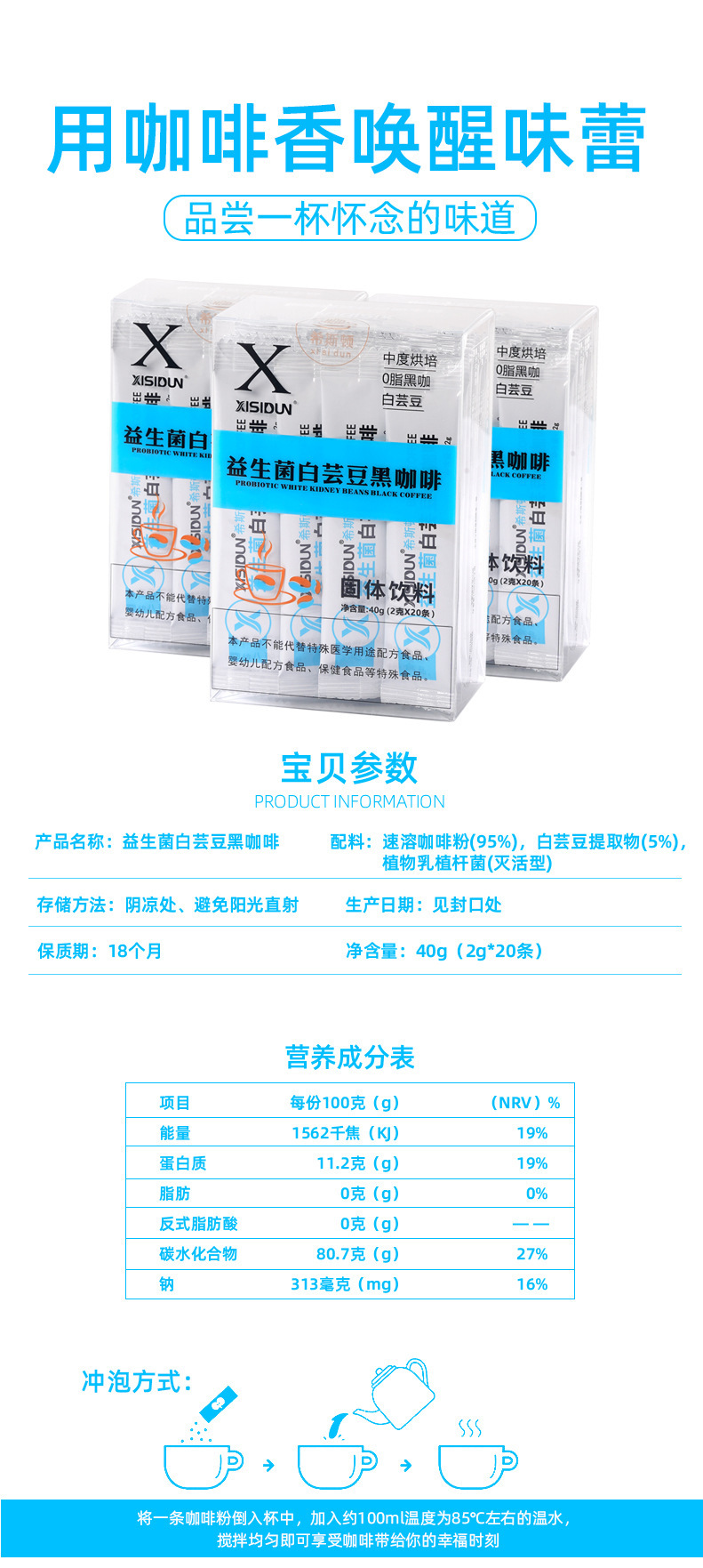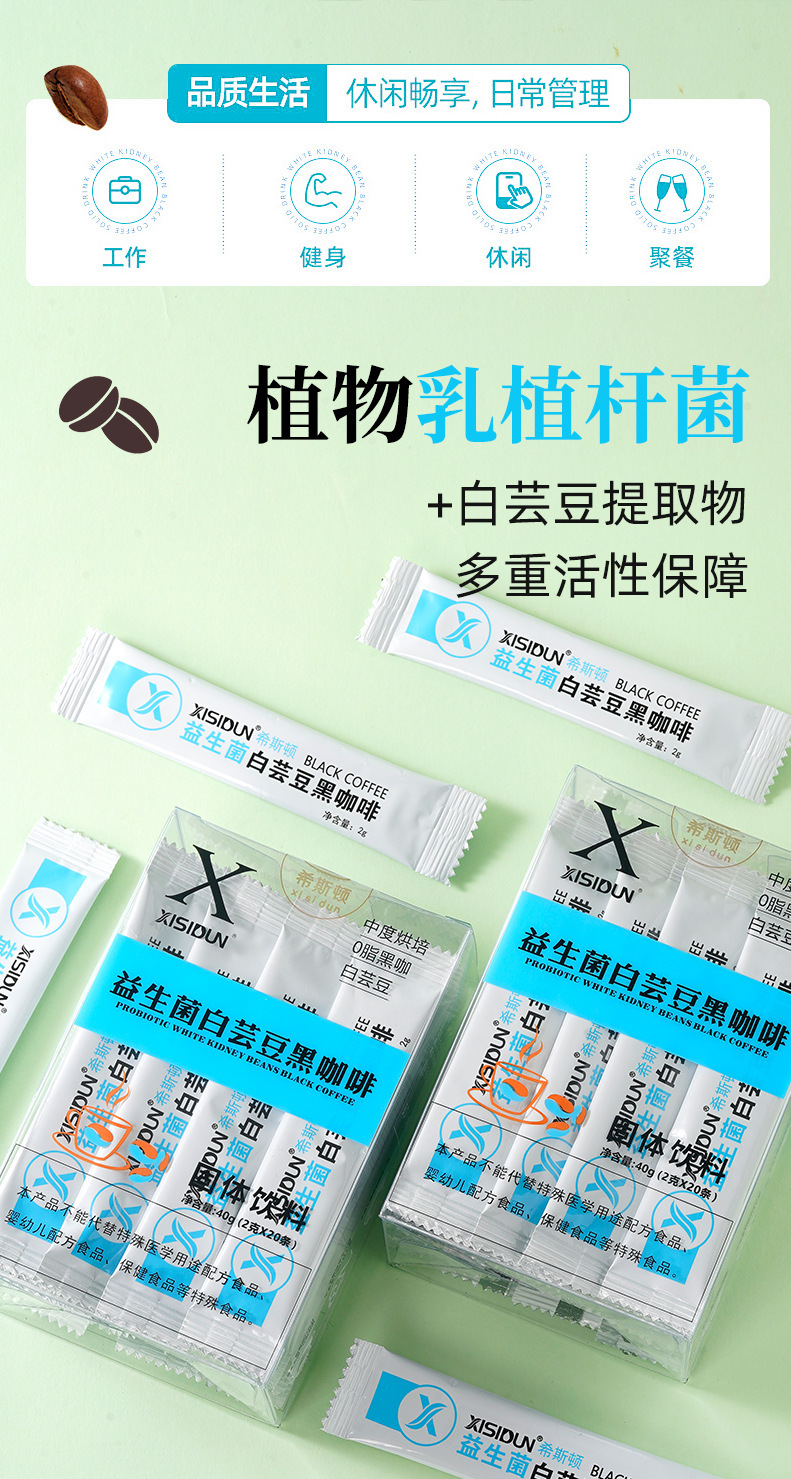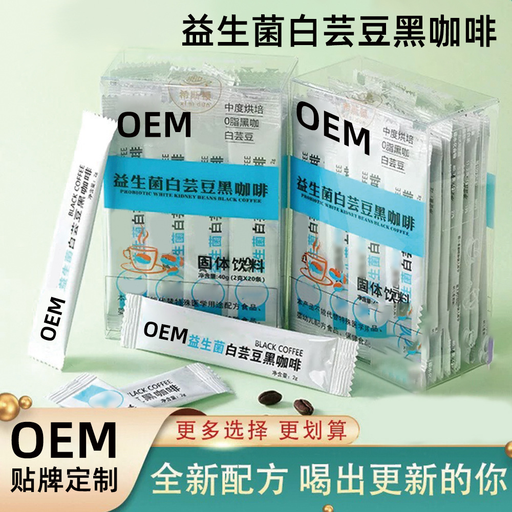 新しいアップグレードプロバイオティクス白芸豆黒コーヒー香アルコールアメリカラテインスタント冷熱ダブルコーヒー粉