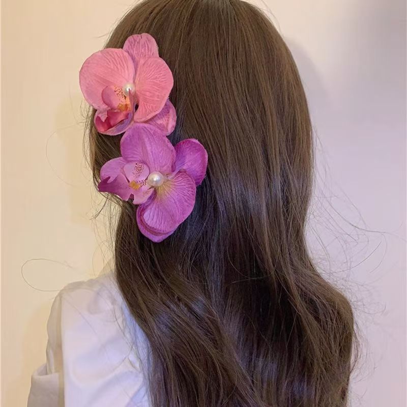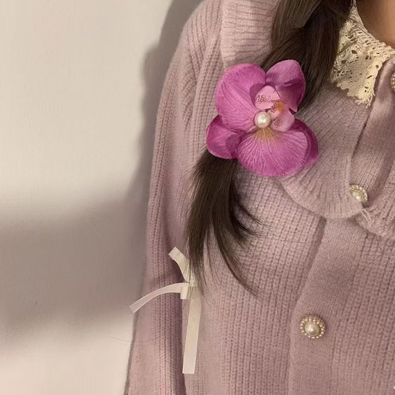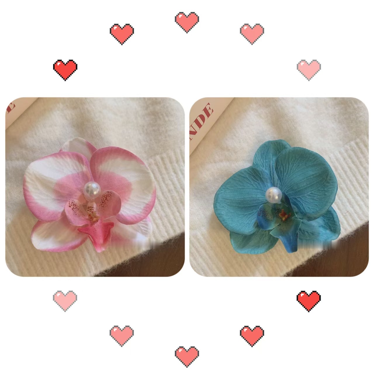 胡蝶蘭パールフラワー模擬ヘアピン前髪雰囲気甘い写真撮影サイドヘアピンスーパー妖精の頭飾りヘアアクセサリー