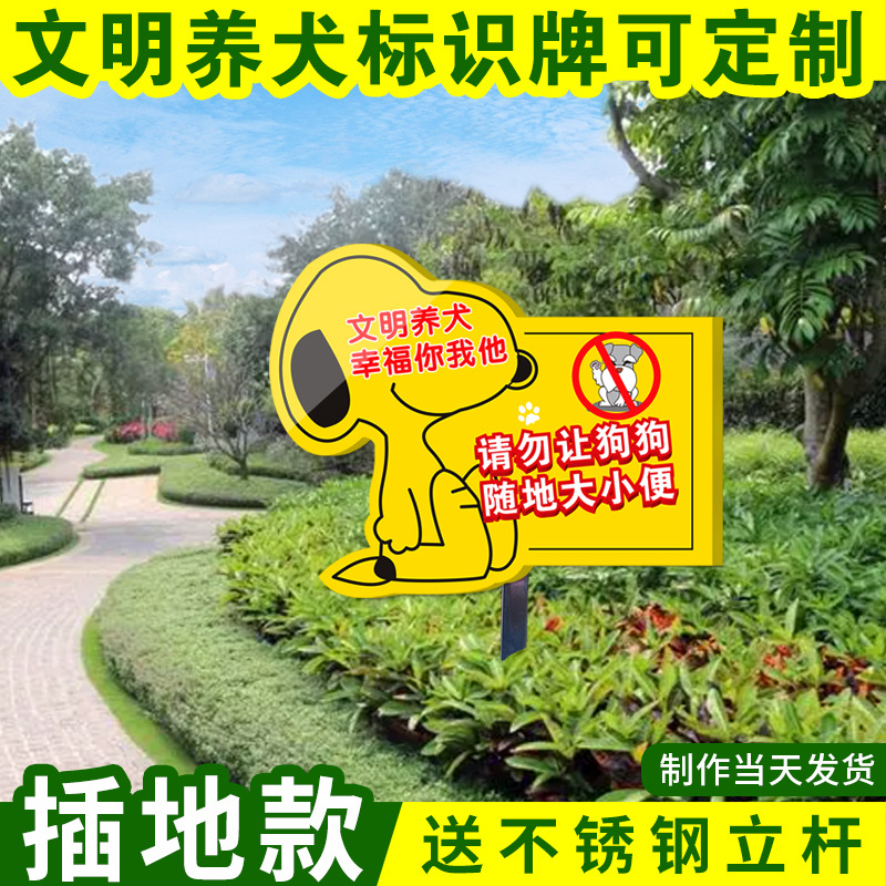 文明養犬提示牌芝生は犬の散歩を禁止します。