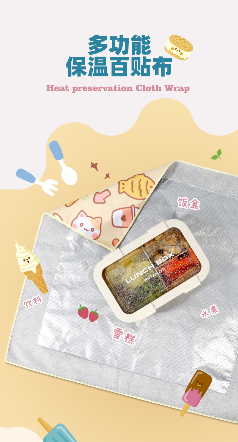 断熱層を備えた国境を越えた売れ筋の粘着マジッククロスラップランチボックスと便利な収納バッグ