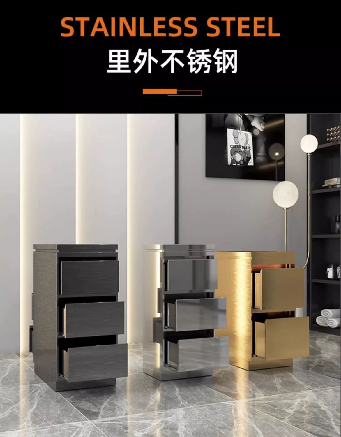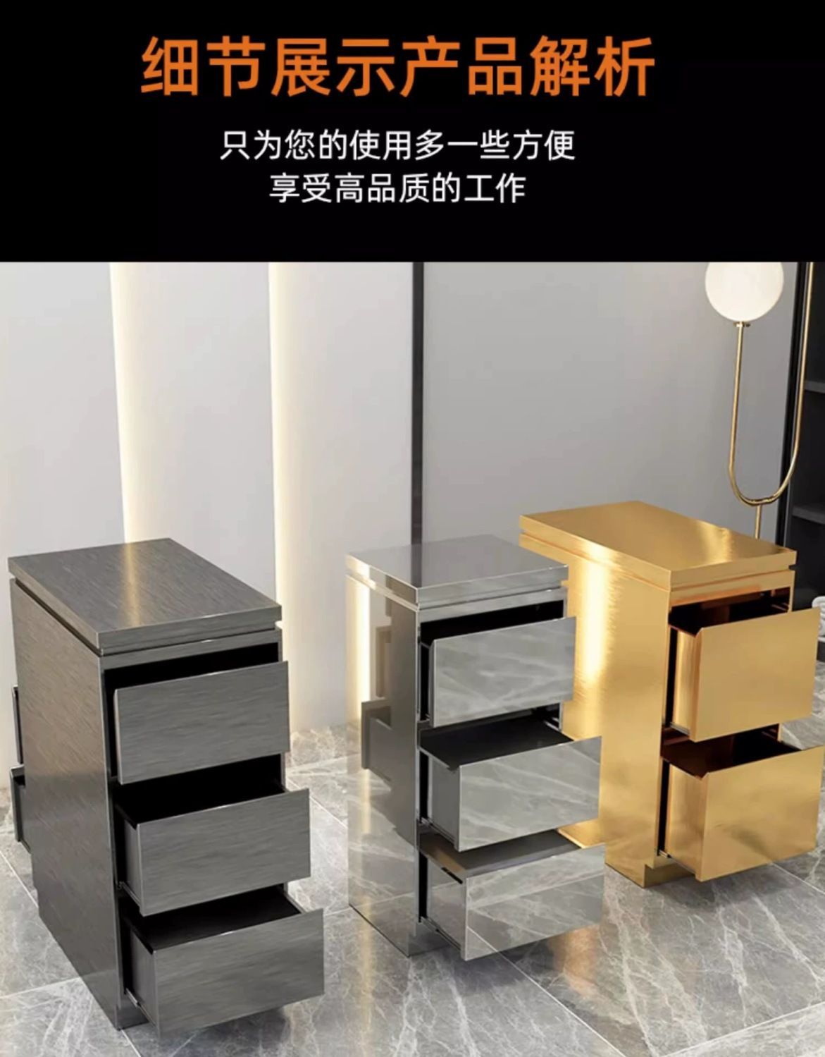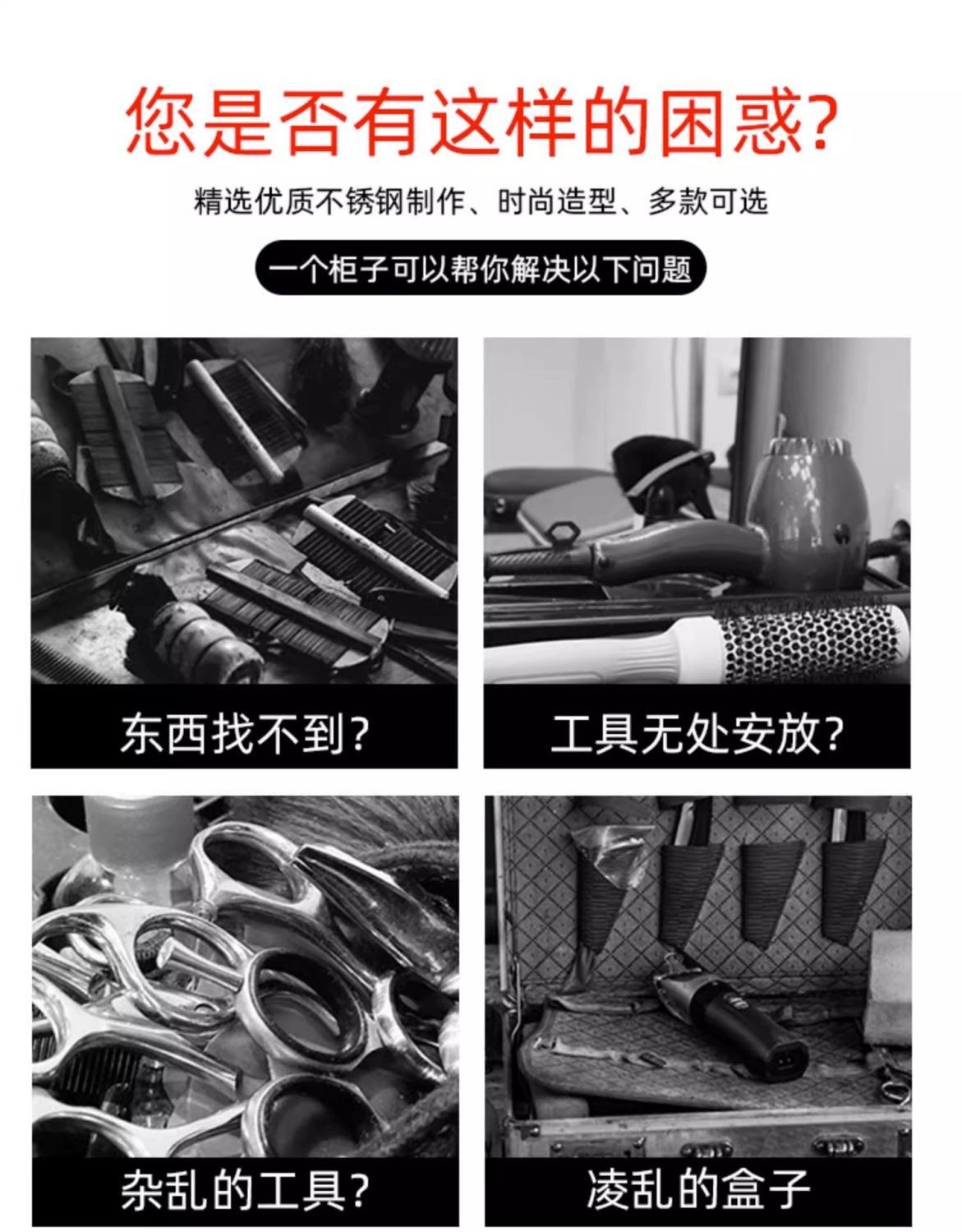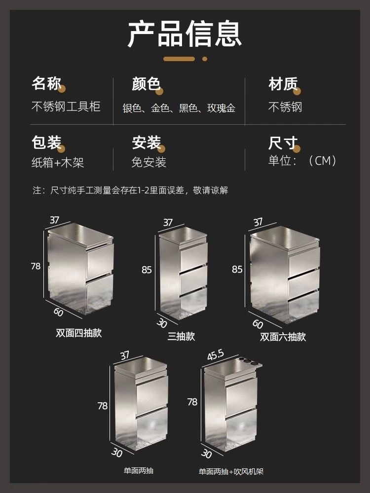 理发店工具柜台发廊专用不锈钢美发双面柜子收纳储物带抽屉风机架