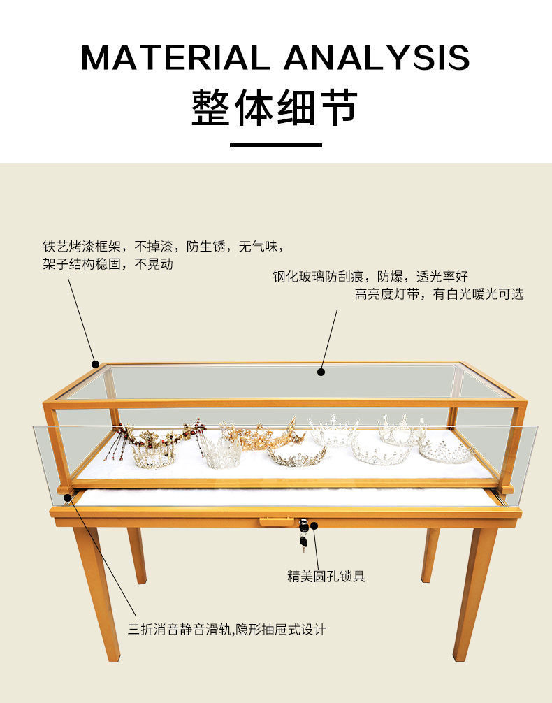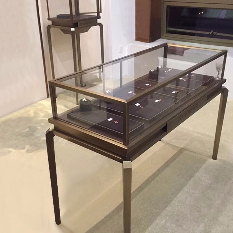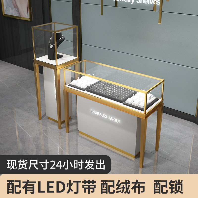 ジュエリーショーケースステンレスジュエリーカウンター玉器銀装飾金博物館ショーケースジュエリーキャビネット銀装飾玉器